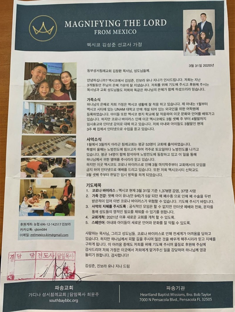 멕시코 - 2020년 3월 [멕시코선교편지] 김성준 선교사 가정