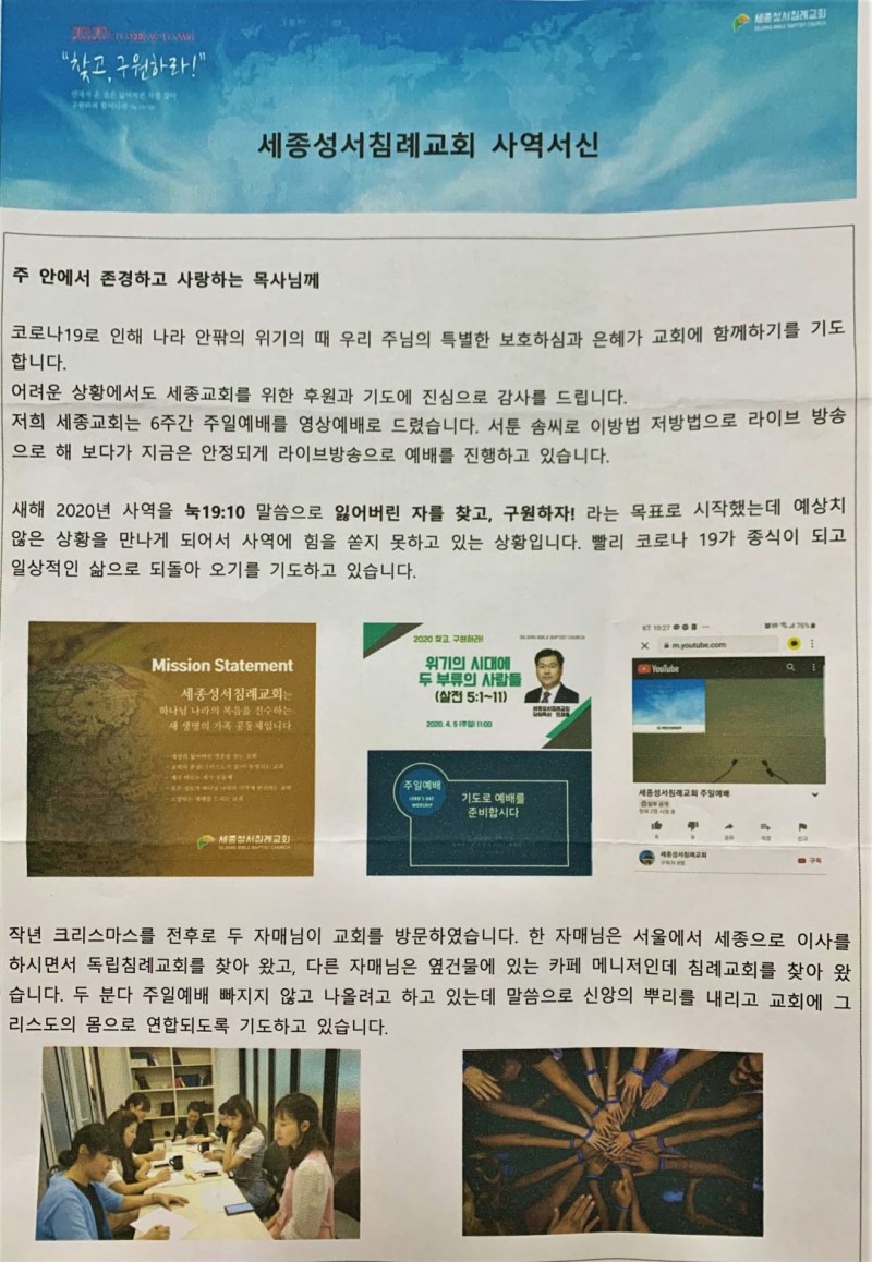 세종 - 2020년 4월 14일 [세종성서침례교회 사역서신]