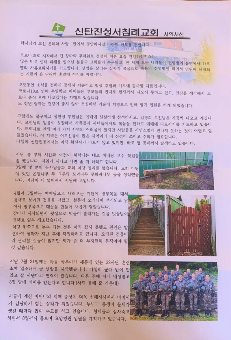 대전 - 2020년 8월 [신탄진성서침례교회] 사역서신