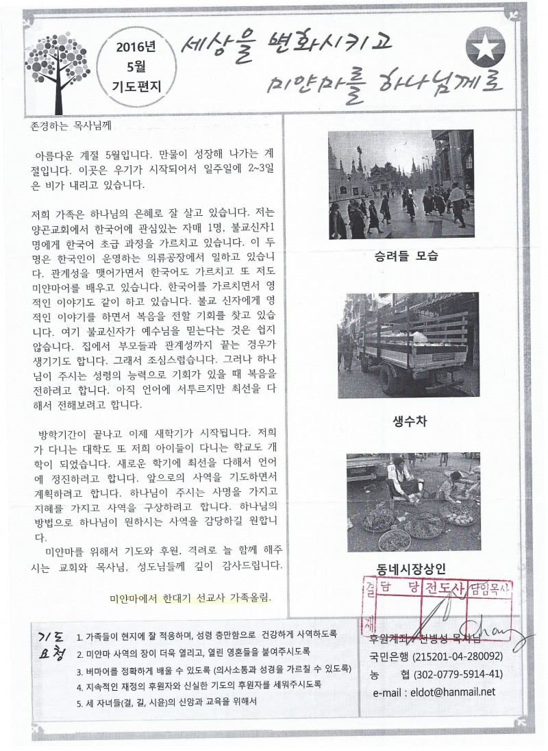 미얀마 - 2018년 5월 "세상을 변화시키고 미얀마를 하나님께로" (한대기선교사)