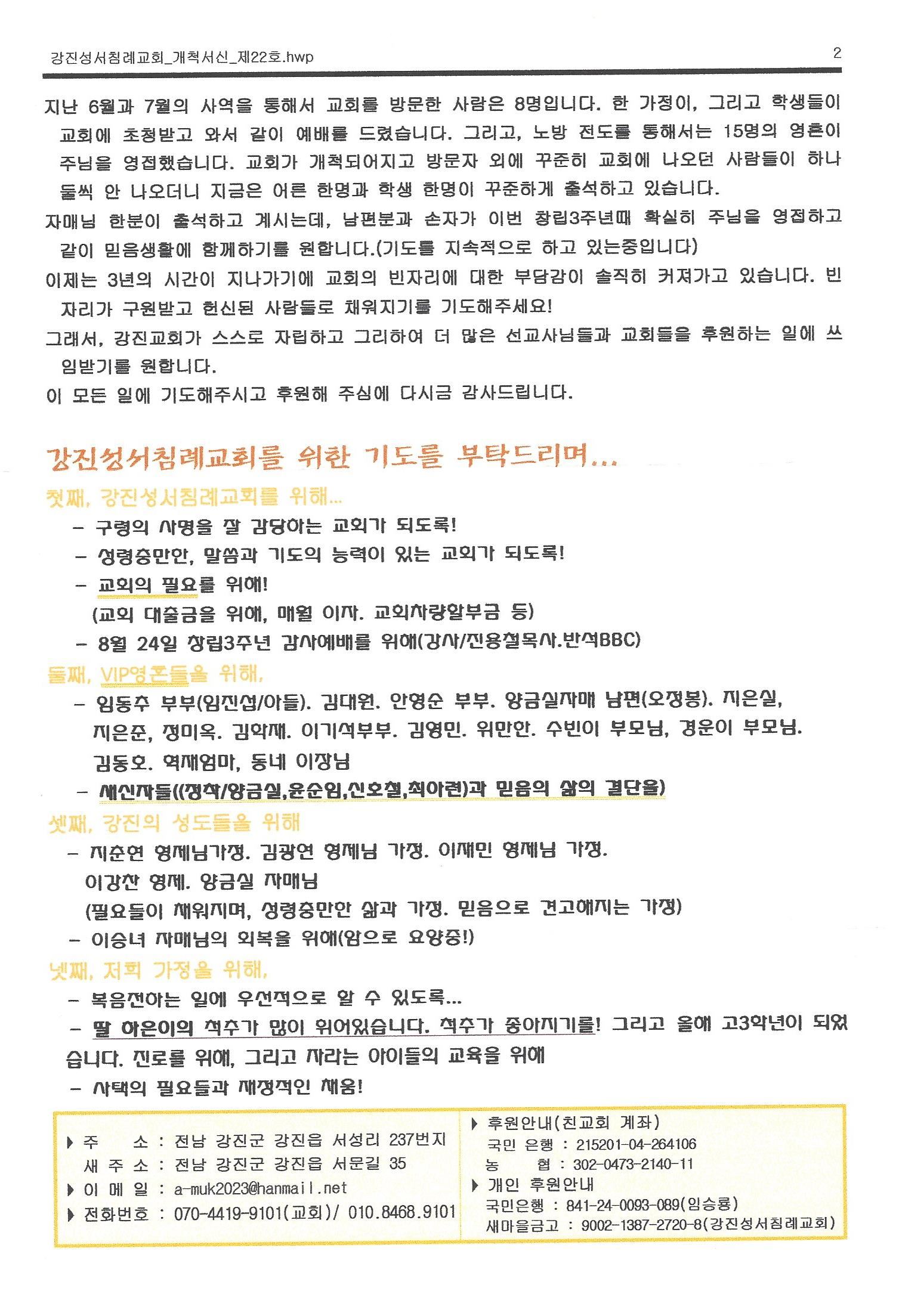전남-2014년 7월 17일 강진성서침례교회 선교편지