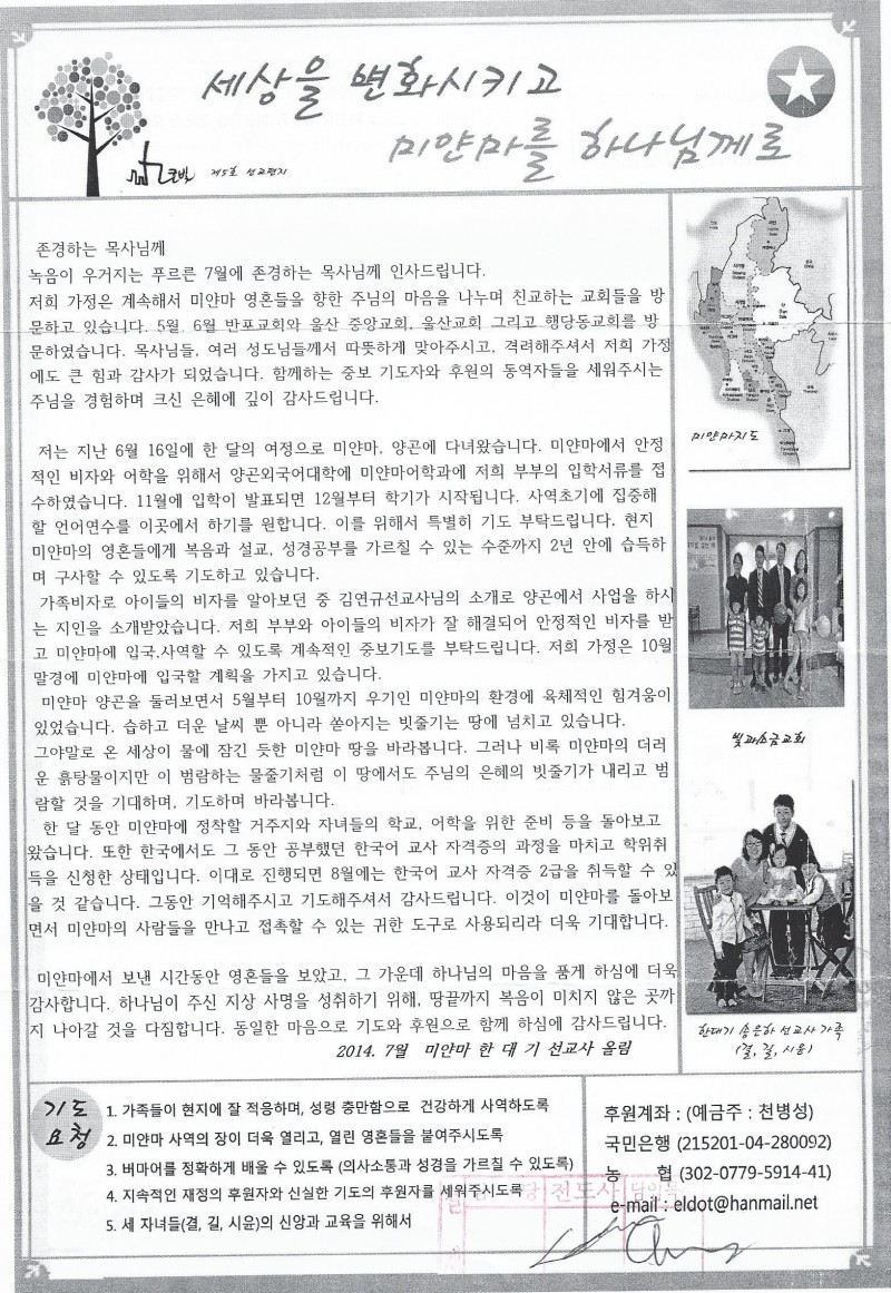미얀마 - 7월소식 "세상을 변화시키고 미얀마를 하나님께로" [한대기선교사]