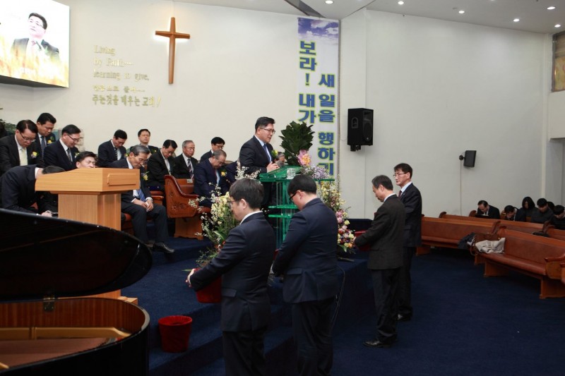 목사님의 인도로 안수예배를 믿음으로 시작하신 형제, 자매님들은