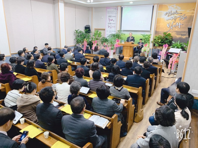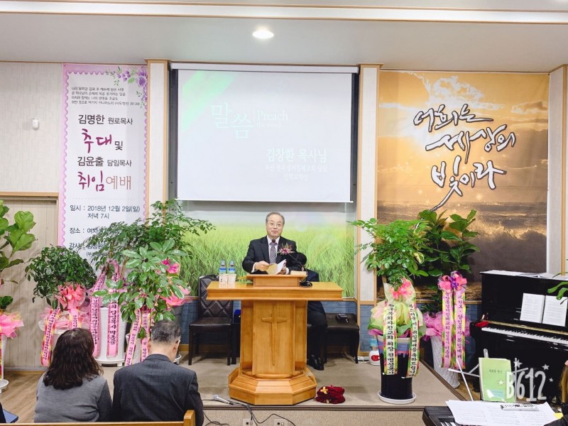 목사님께서 여차성서침례교회 이취임식 예배에서