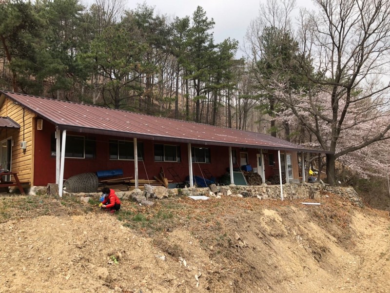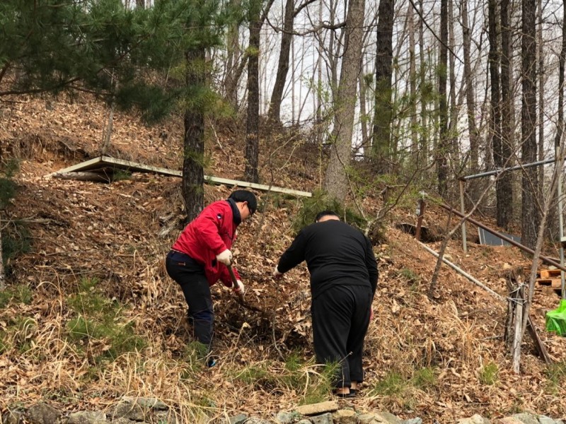 맛있는 식사와 초 쑥을 뜻고 복숭아, 미니사과, 호두나무를 심고 왔습니다~