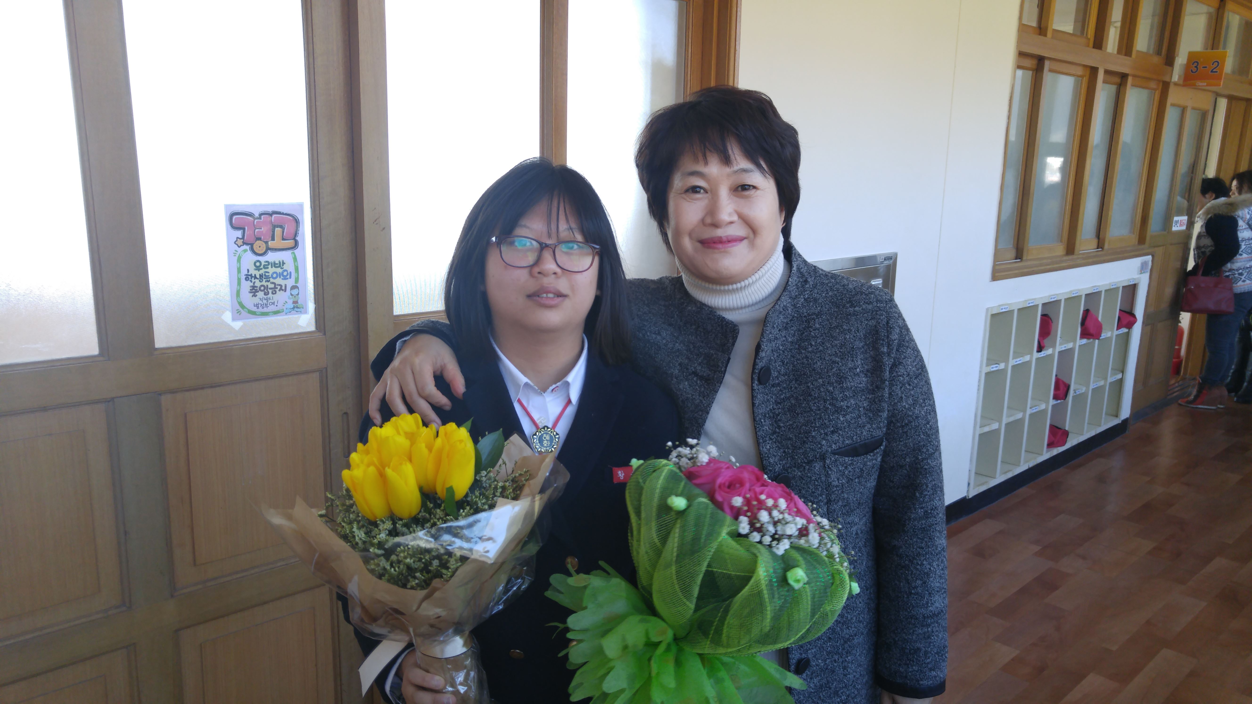 오늘  중학교  졸업식이 있었습니다. 축하합니다