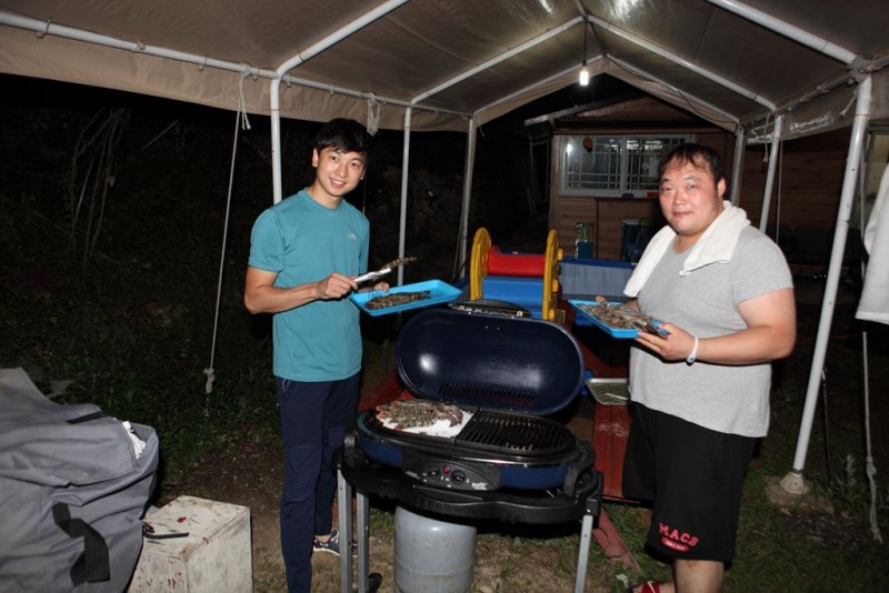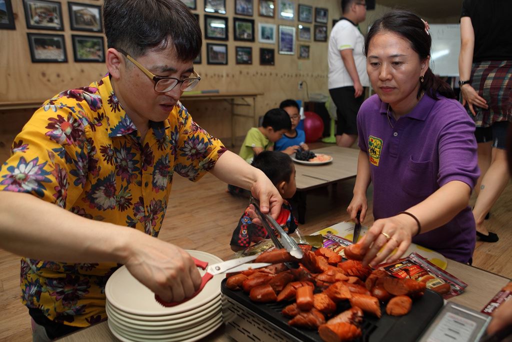 가족신문도 만들고 맛있는 쏘세지와 푸짐한 소금구이 왕새우도 먹고...