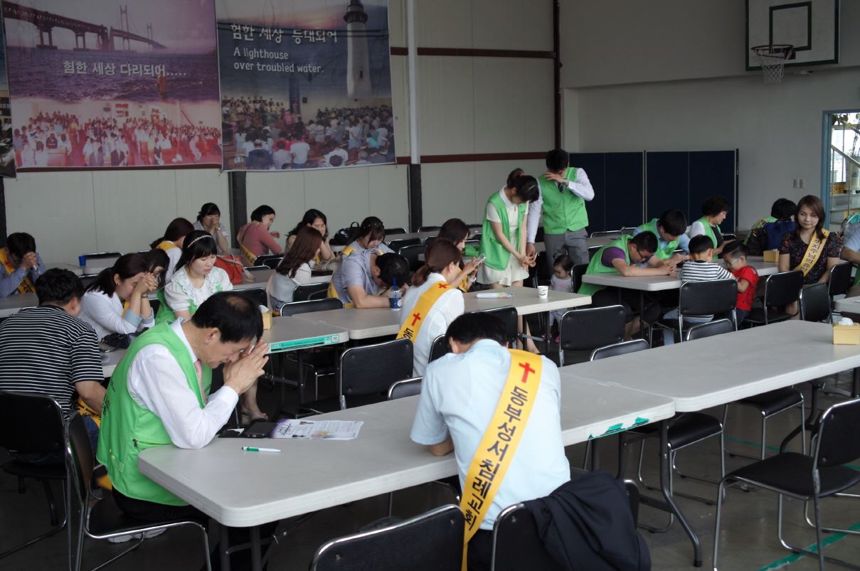 오후 2시 30분 2층 체육관에서 전성도 전도예배가 있었습니다.