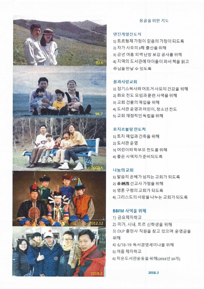 몽골 - 2018년 3월 "몽골을 위한 기도" 여병무선교사