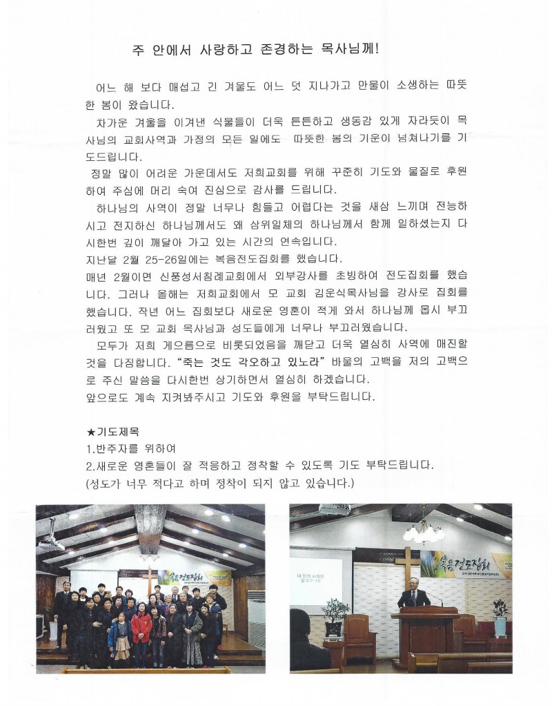 김천 - 2018년 2월 [김천성서침례교회 개척서신]