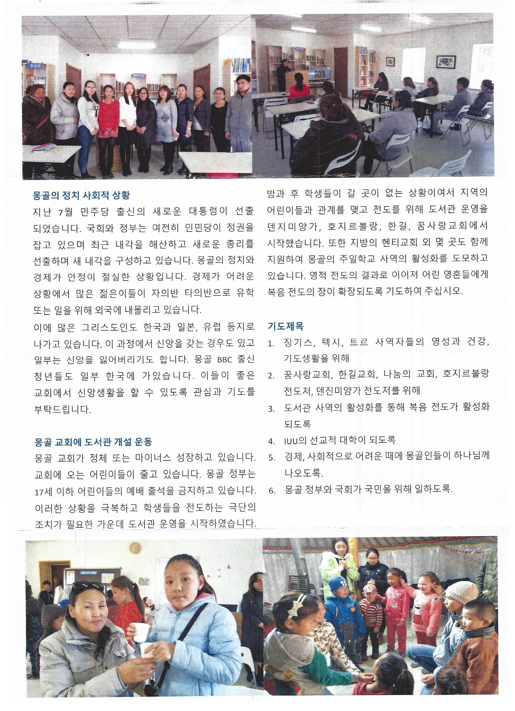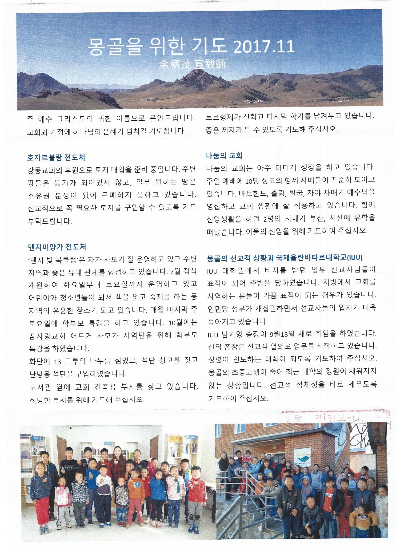 몽골 - 2017년 11월 "몽골을 위한 기도" 여병무선교사