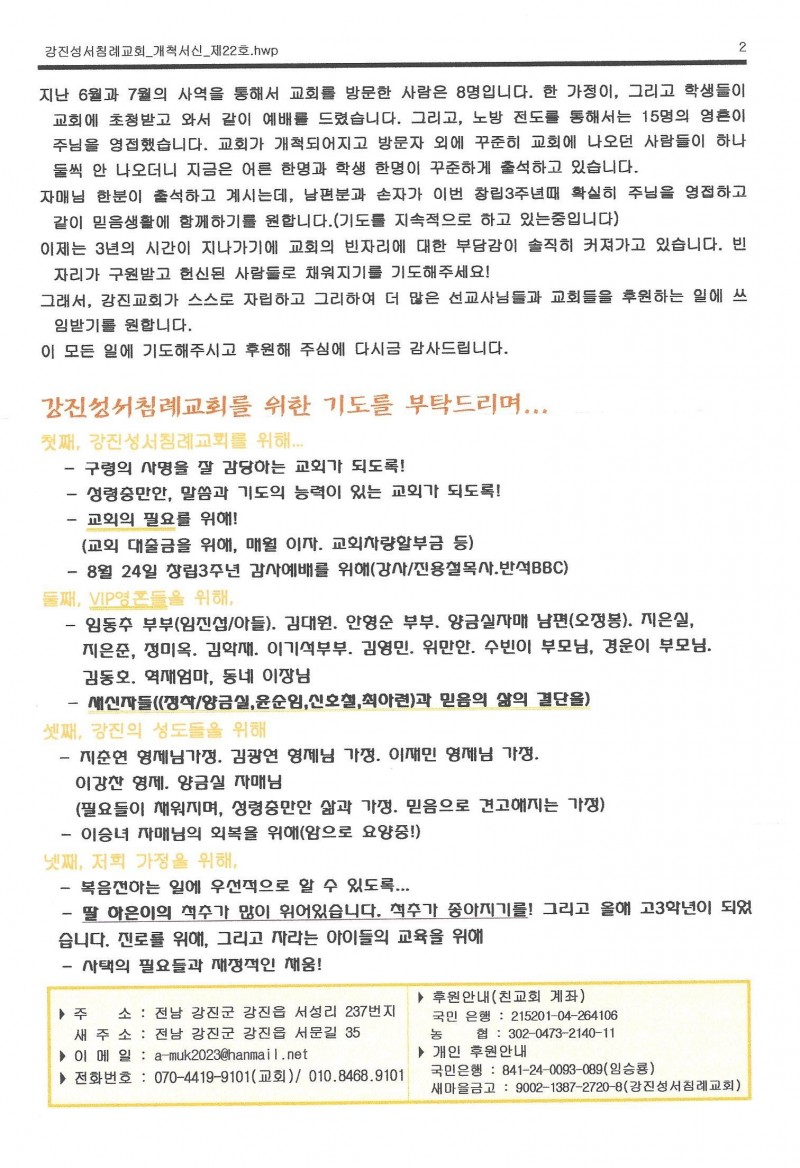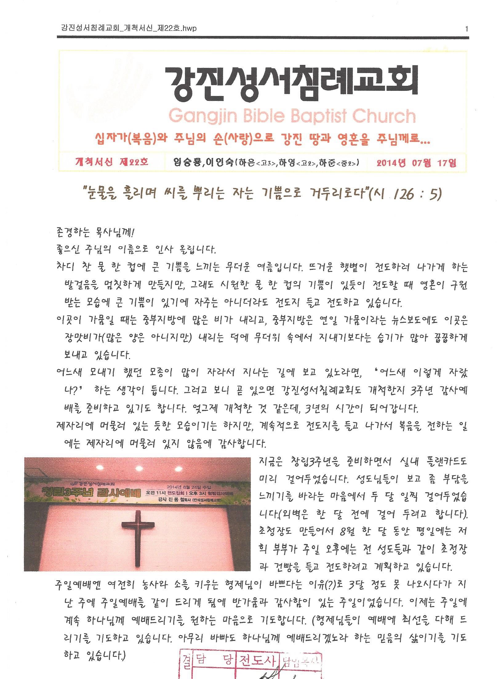 전남-2014년 7월 17일 강진성서침례교회 선교편지