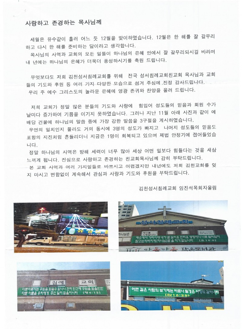 김천 - 2017년 12월 [김천성서침례교회 개척서신]