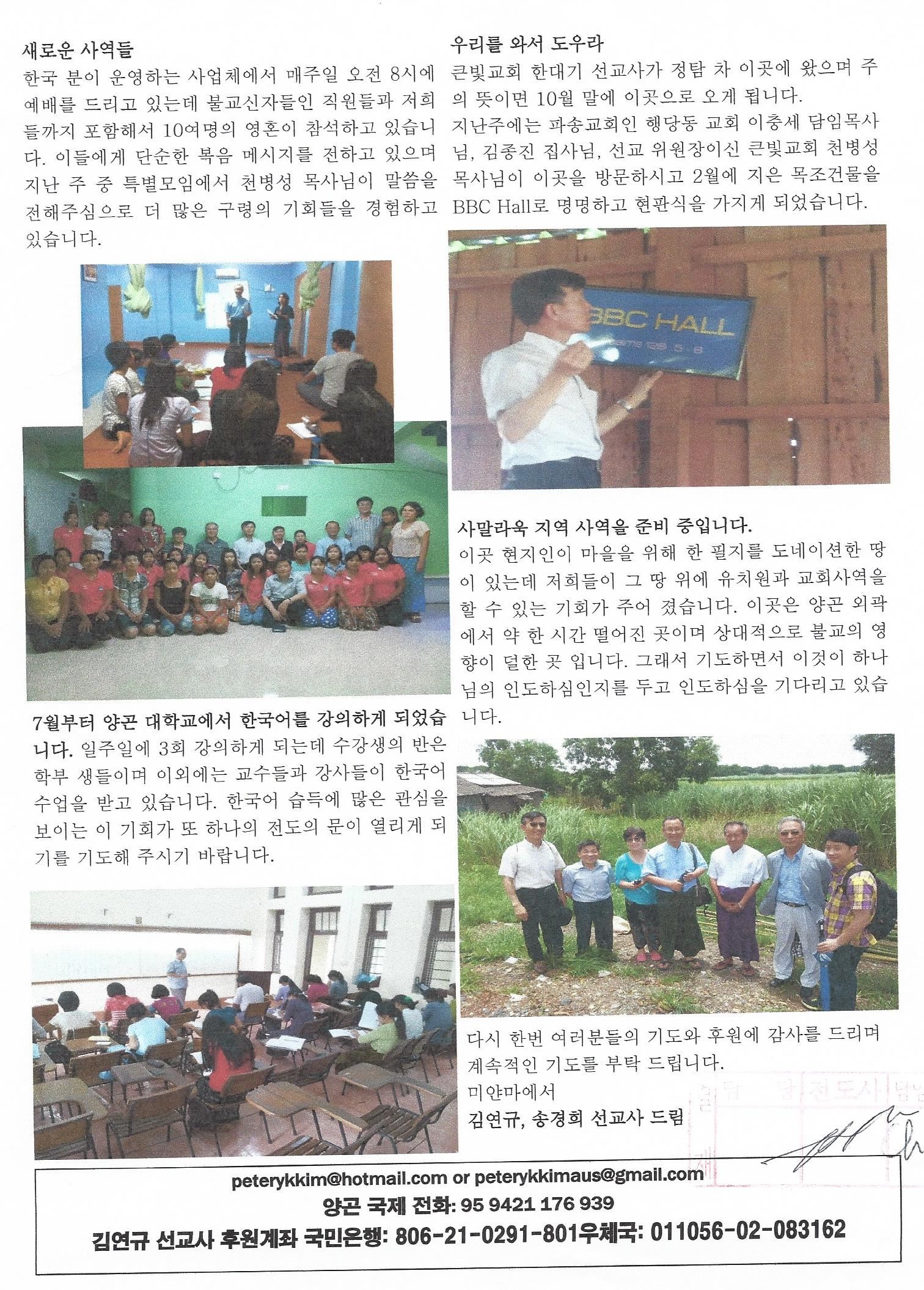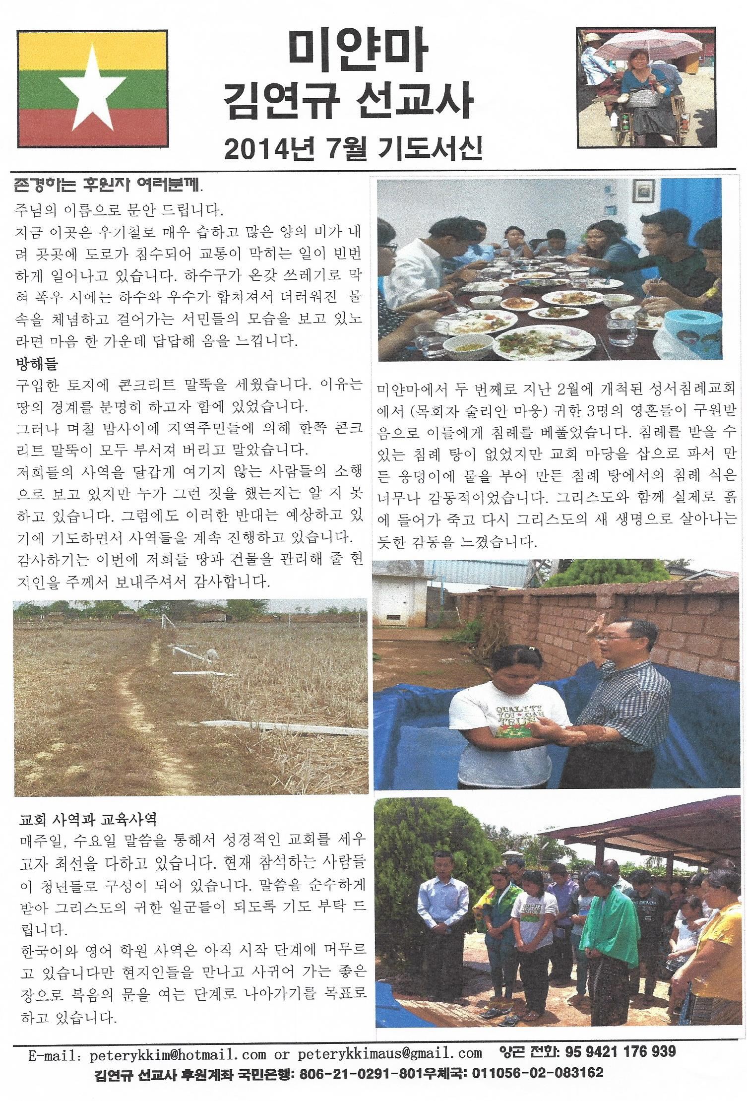 미얀마 - 김연규 선교사님 2014년 7월 기도서신