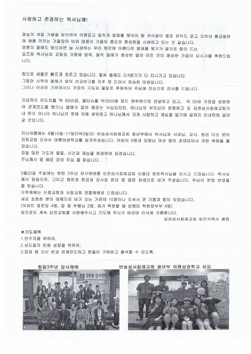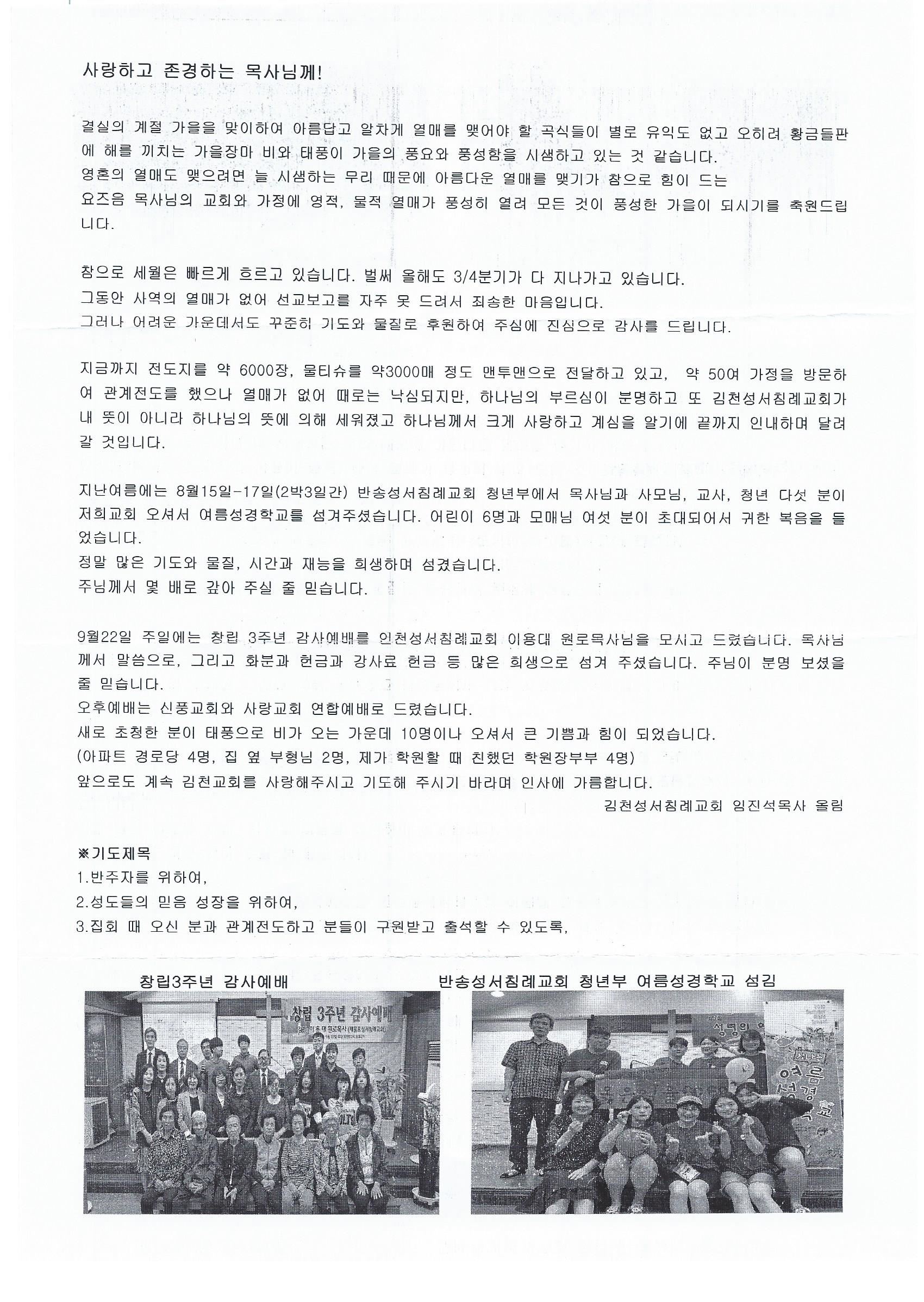 김천 - 2019년 9월 [김천성서침례교회 개척서신]