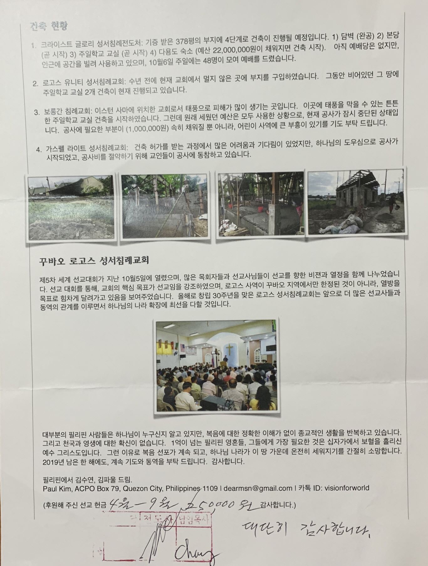 필리핀 - 2019년 10월 필리핀 선교 보고