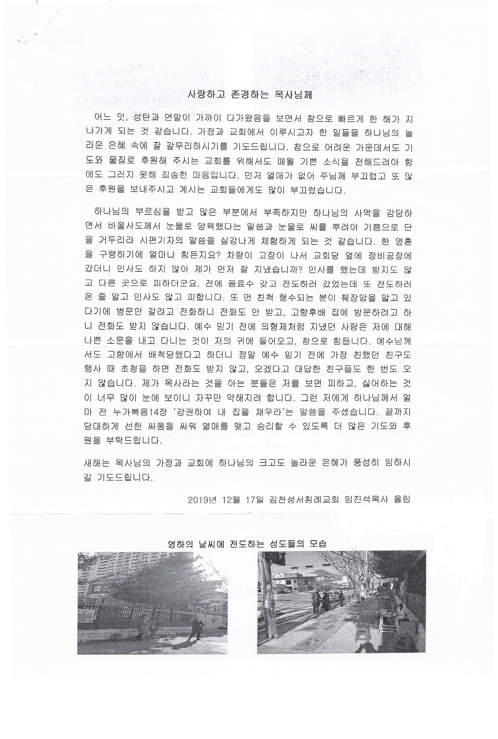김천 - 2019년 12월 [김천성서침례교회 개척서신]
