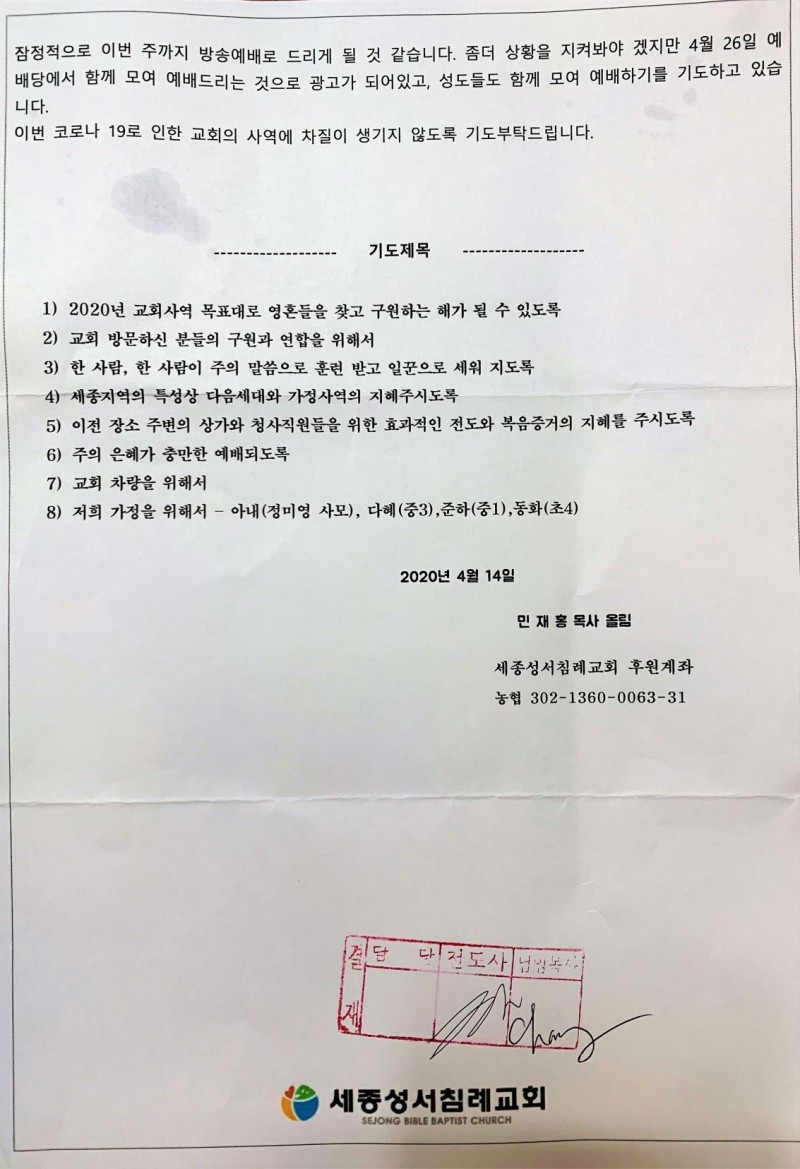 세종 - 2020년 4월 14일 [세종성서침례교회 사역서신]