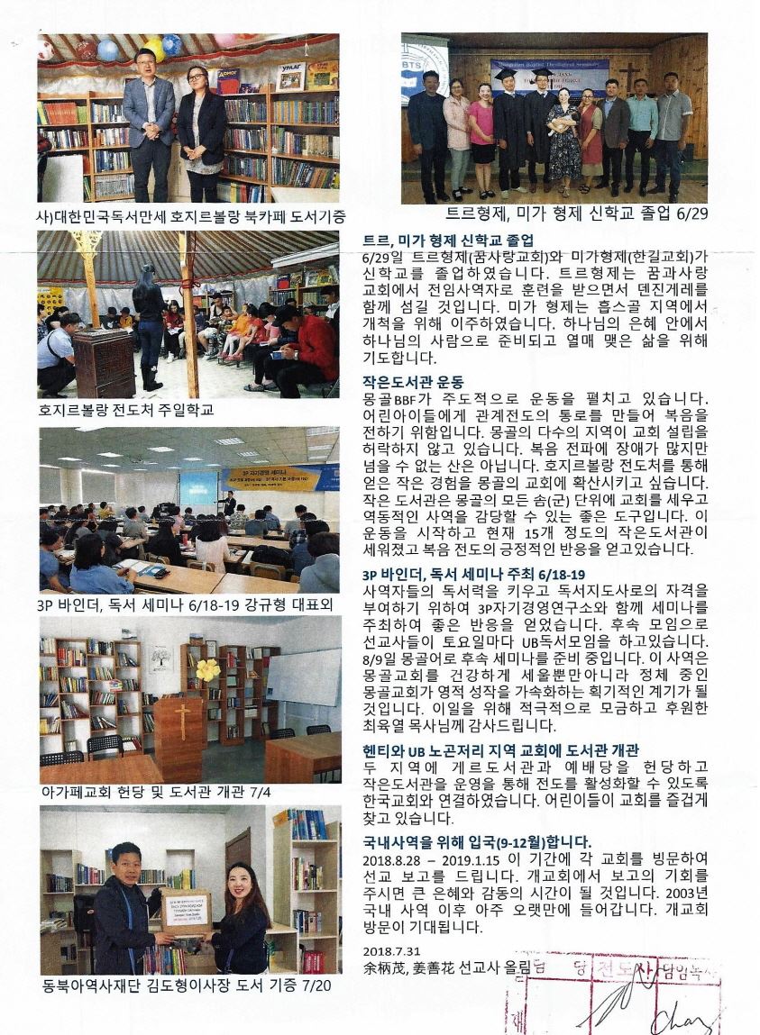 몽골 - 2018년 7월 "몽골을 위한 기도" 여병무선교사