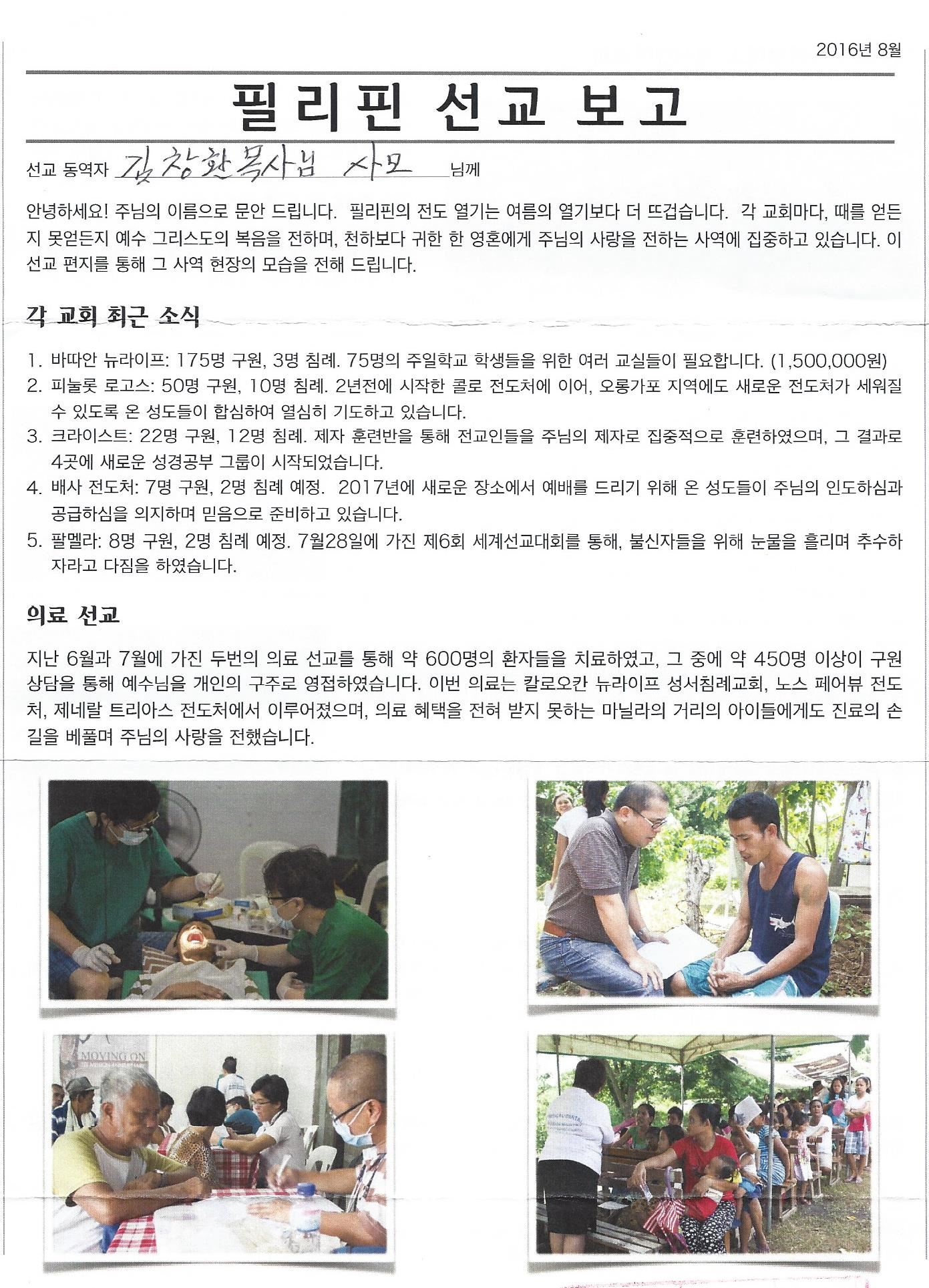 필리핀 - 2016년 8월 필리핀 선교 보고