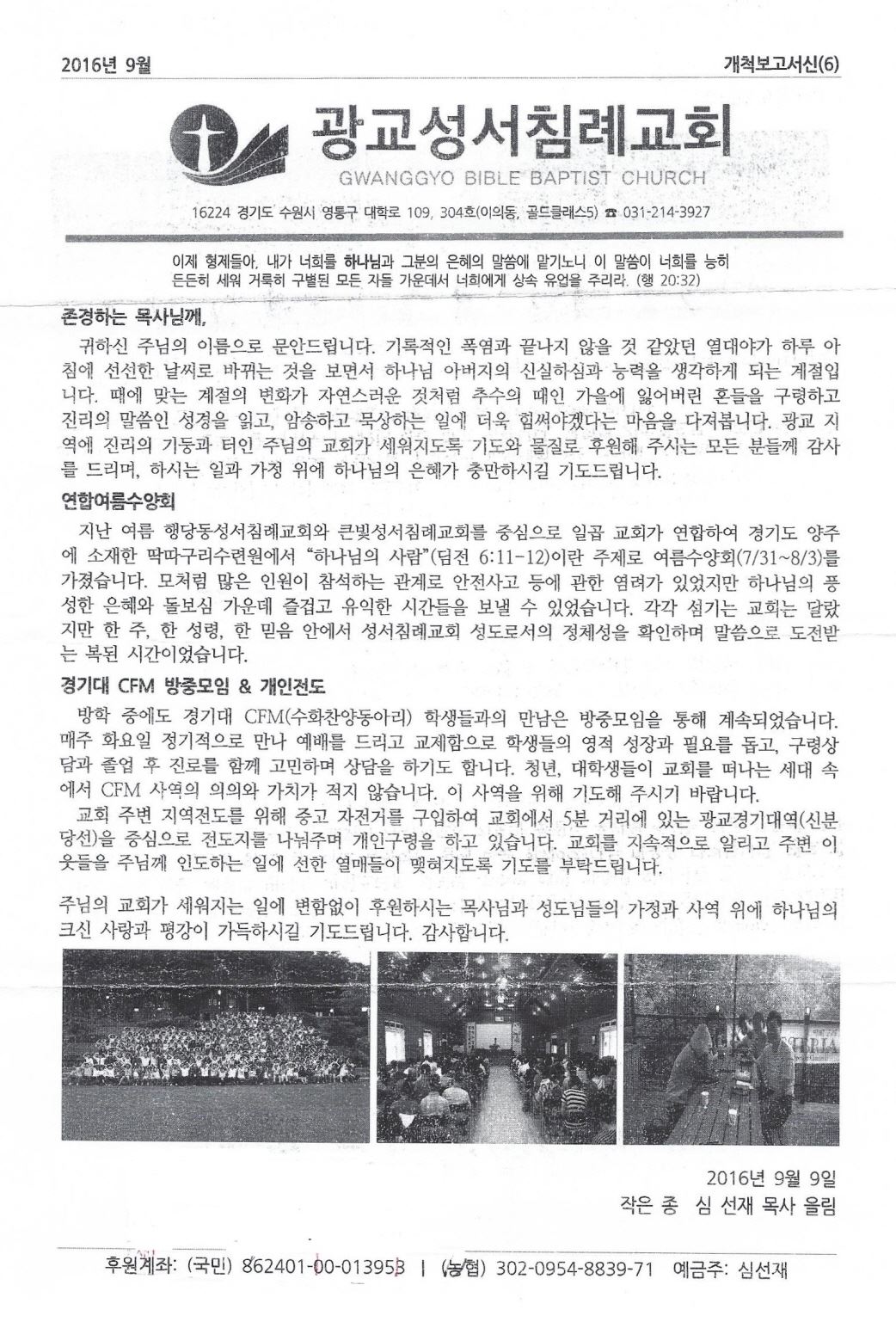 경기도 - 2016년 9월 (광교성서침례교회 개척서신)