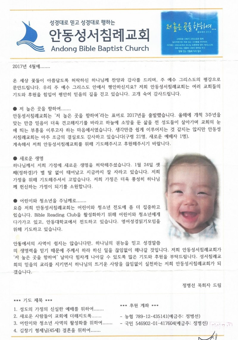 안동 - 2017년 4월 (안동성서침례교회 개척서신)