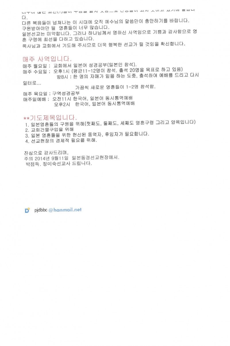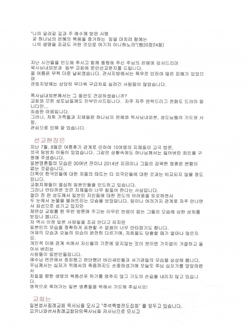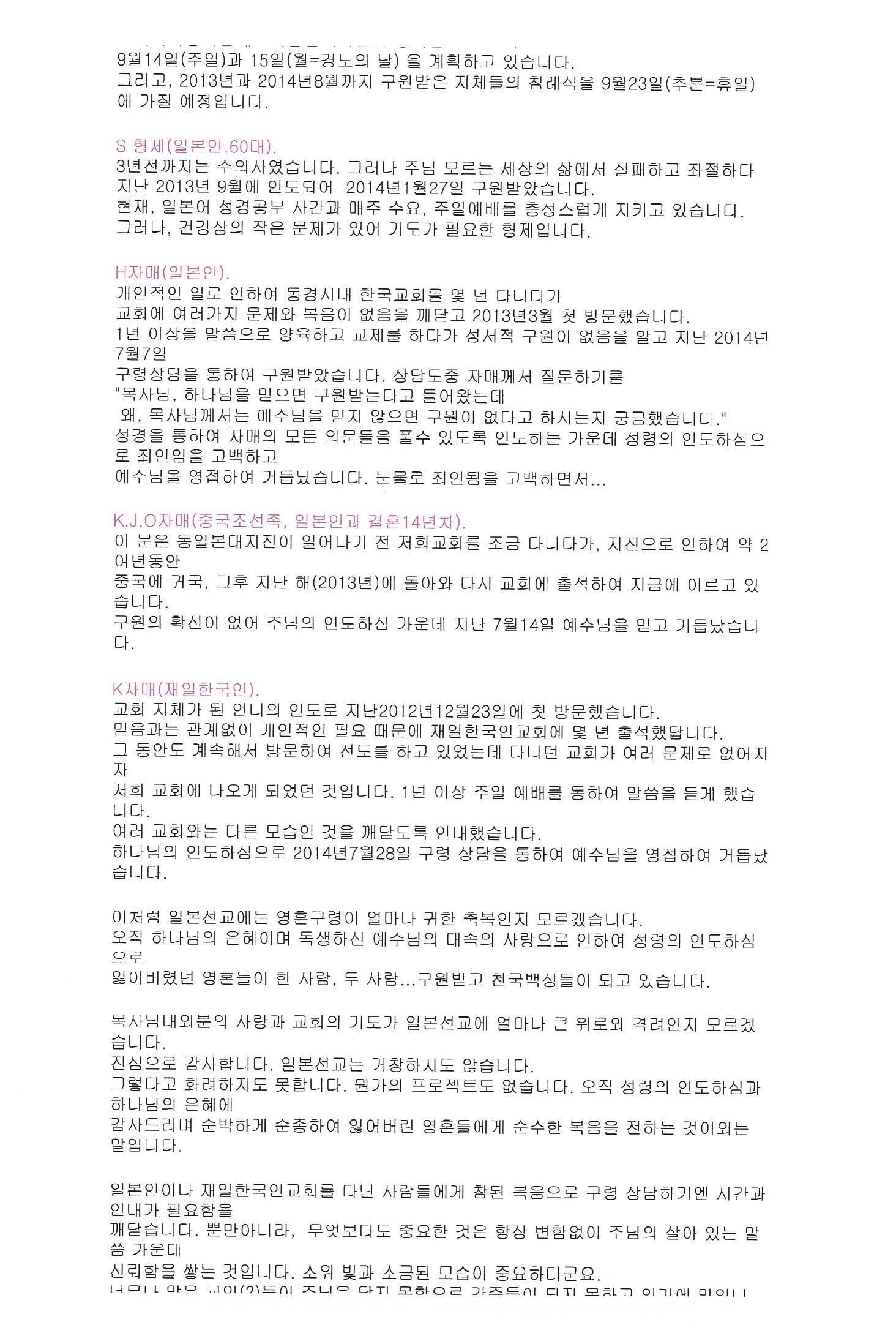 일본 - 2014년 9월 14일 (일본선교의 현장에서 인사드립니다.)