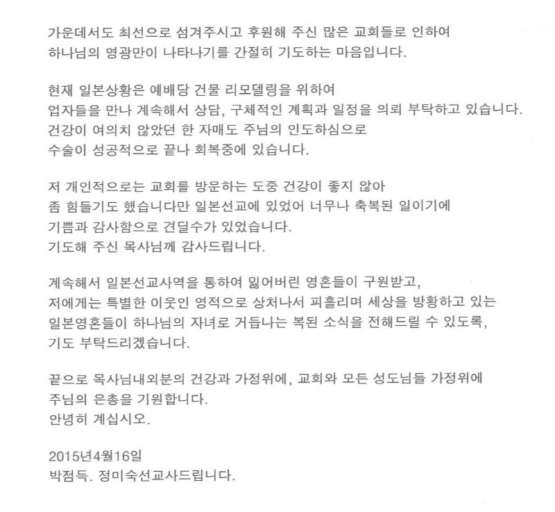 일본 - 2015년 4월 16일 (주안에서 존경하는 목사님께 드립니다)