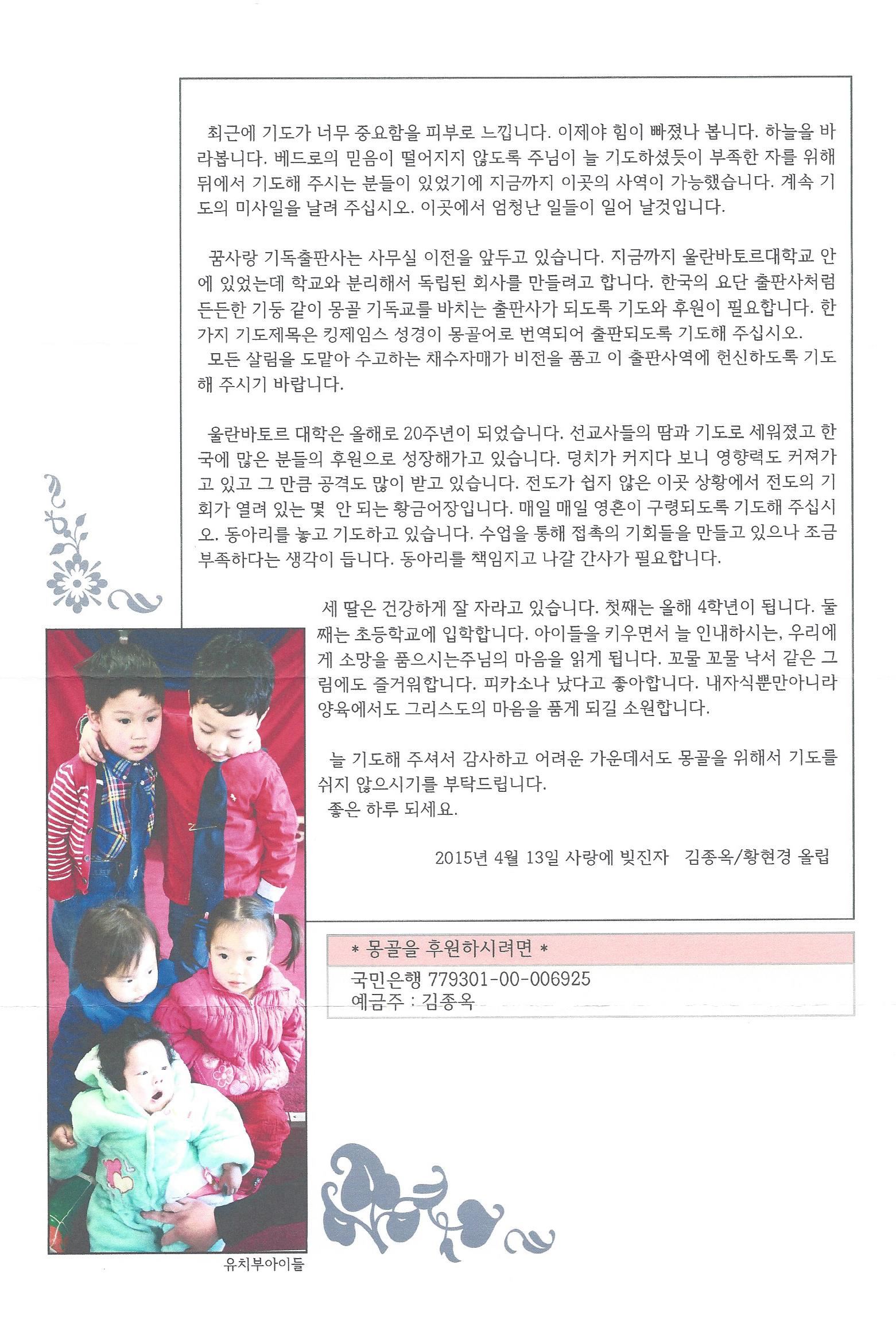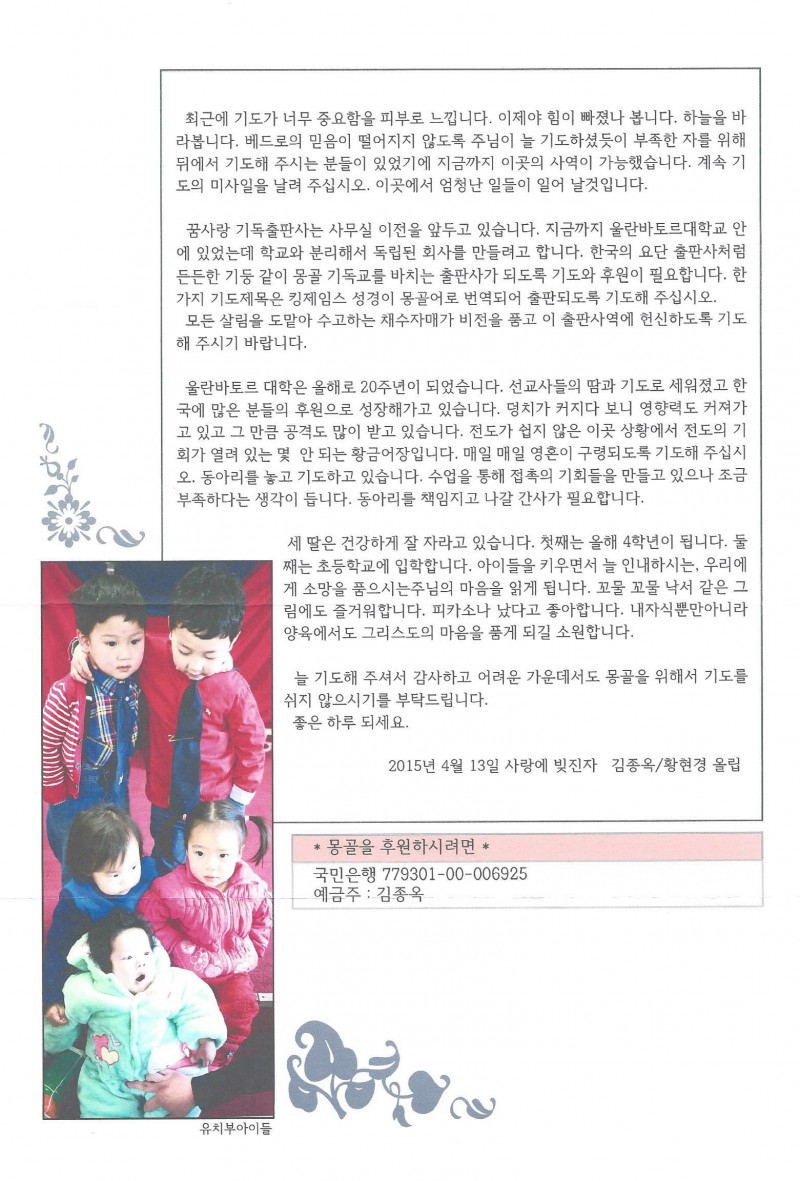 몽골 - 2015년 4월 13일 (몽골 김종옥, 황현경선교사님)