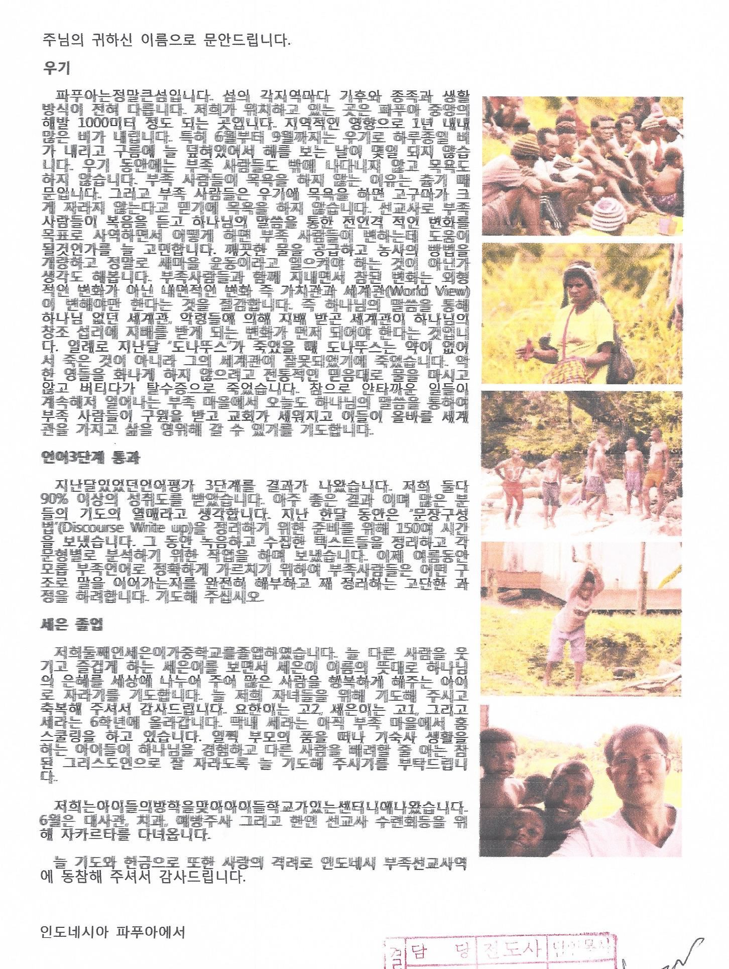 인도네시아 - 2015년 5월 "주님의 귀하신 이름으로 문안드립니다."
