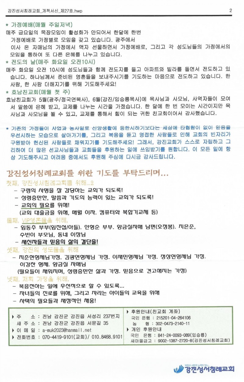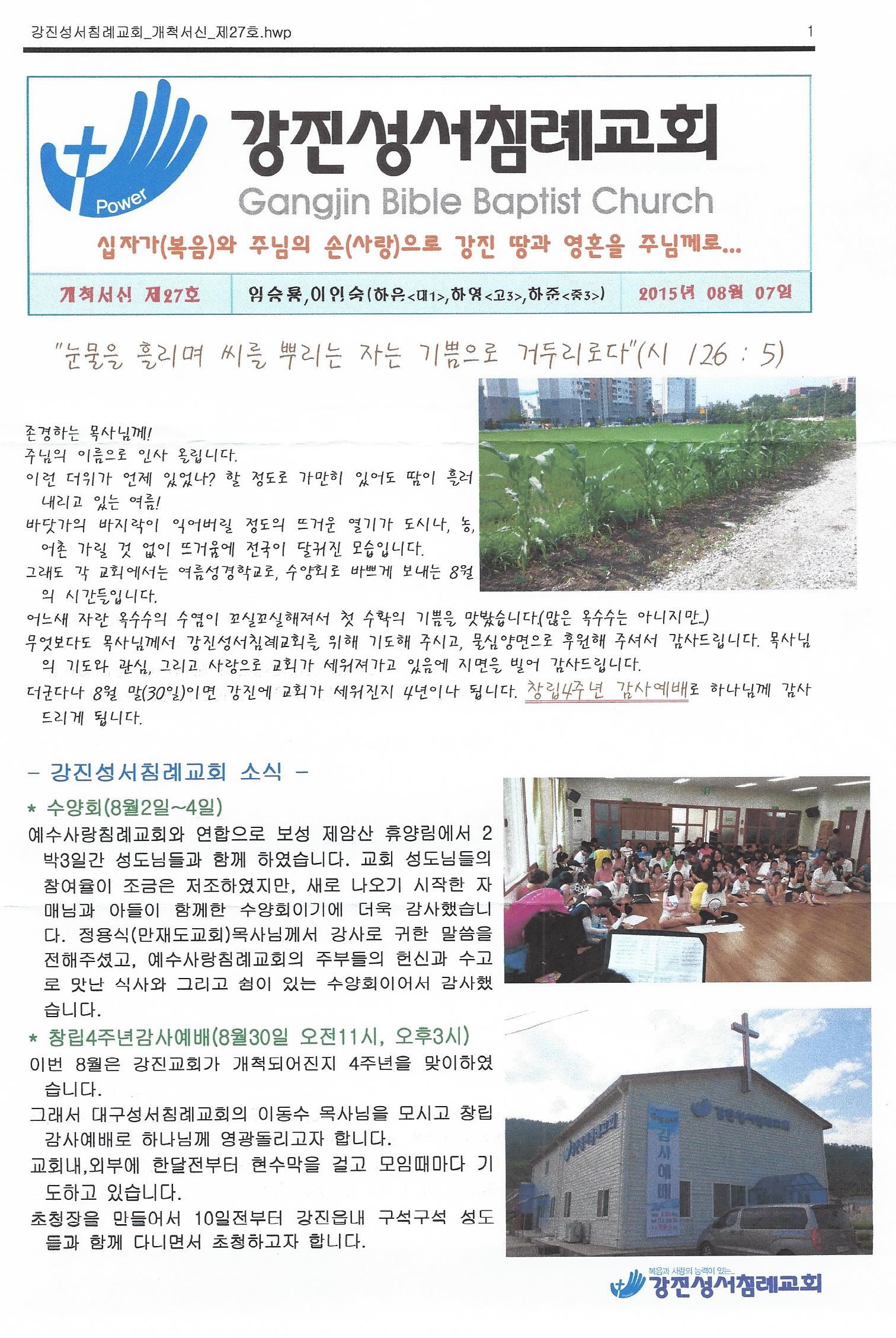 전남 - 2015년 08월 7일 (강진성서침례교회 개척서신