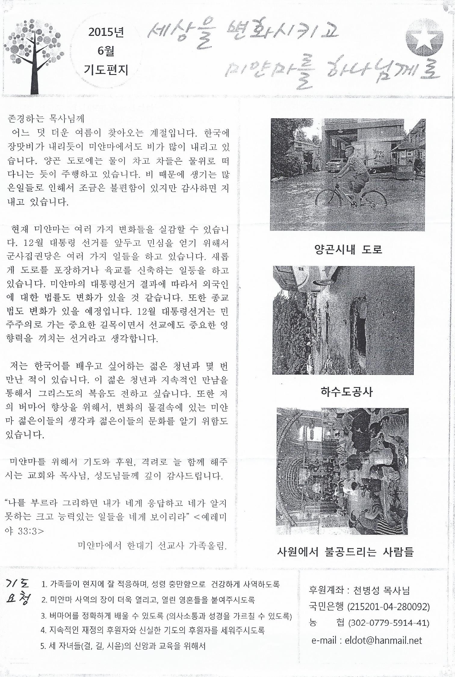 미얀마 - 2015년 6월 "세상을 변화시키고 미얀마를 하나님께로" (한대기선교사)