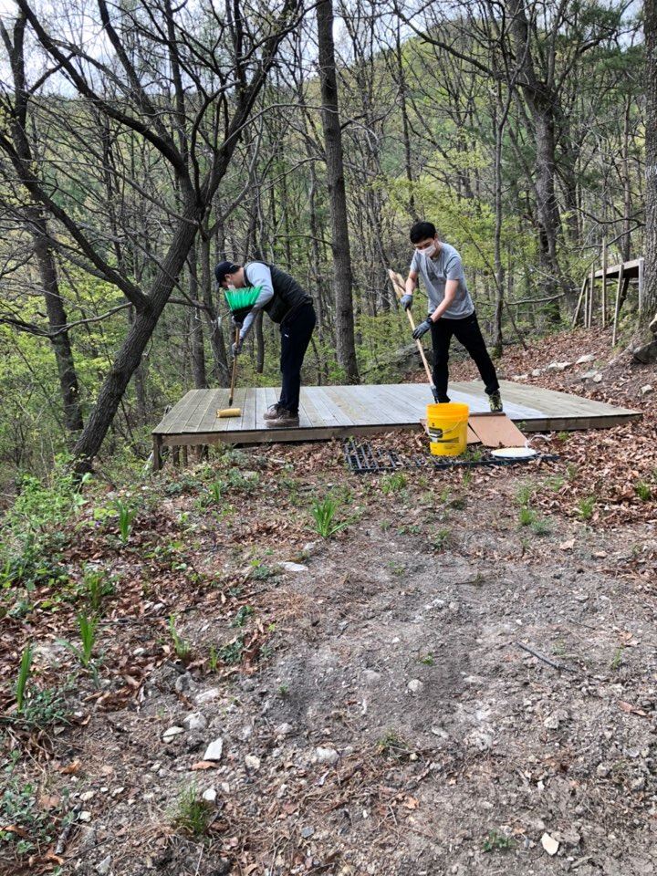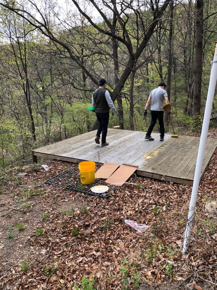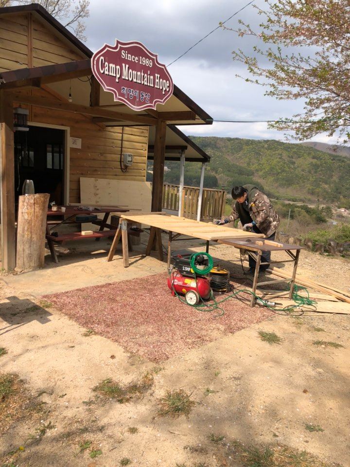 캠프장을 새단장하며 교제 시간을 갖었습니다.