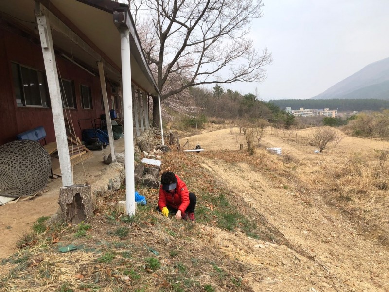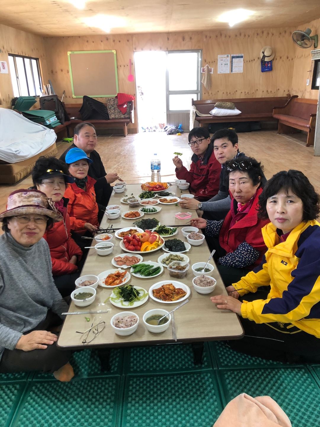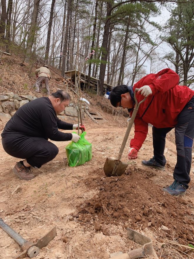 맛있는 식사와 초 쑥을 뜻고 복숭아, 미니사과, 호두나무를 심고 왔습니다~
