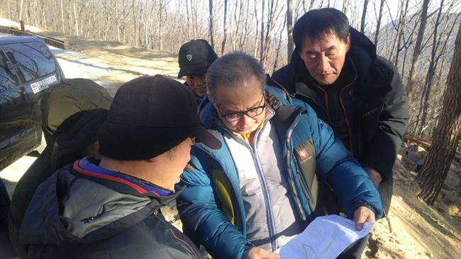 캠프장 뒷쪽 백운산능선을 따라 산행을 계획