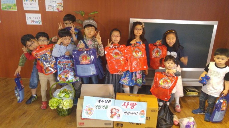 어린이 주일을 맞이 하여 교회에서 준비한 선물을 받고