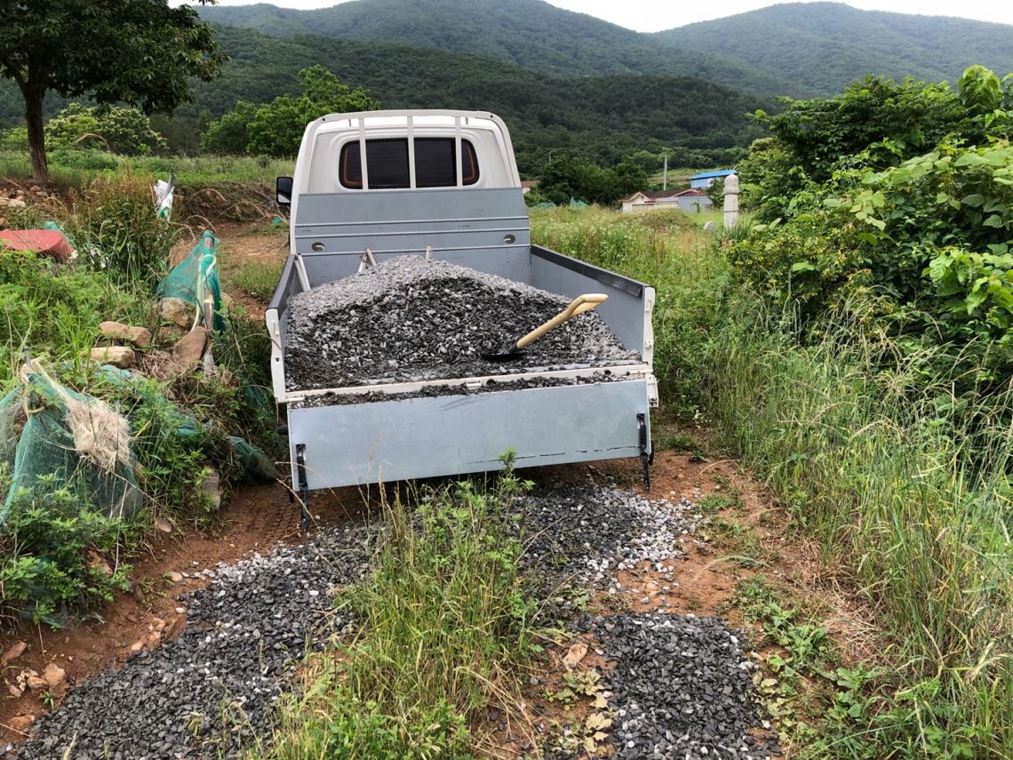 목사님께서 부엌 벽면과 사무실 모서리, 잡초제거와 자갈로 길을 매우시고 오셨습니다.