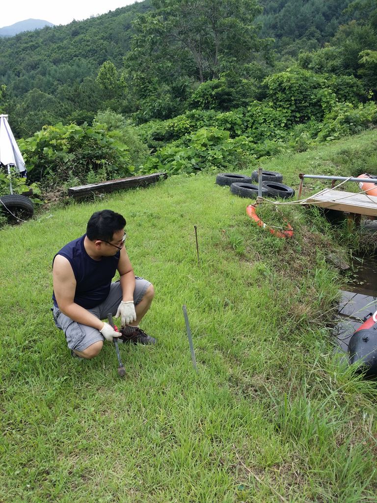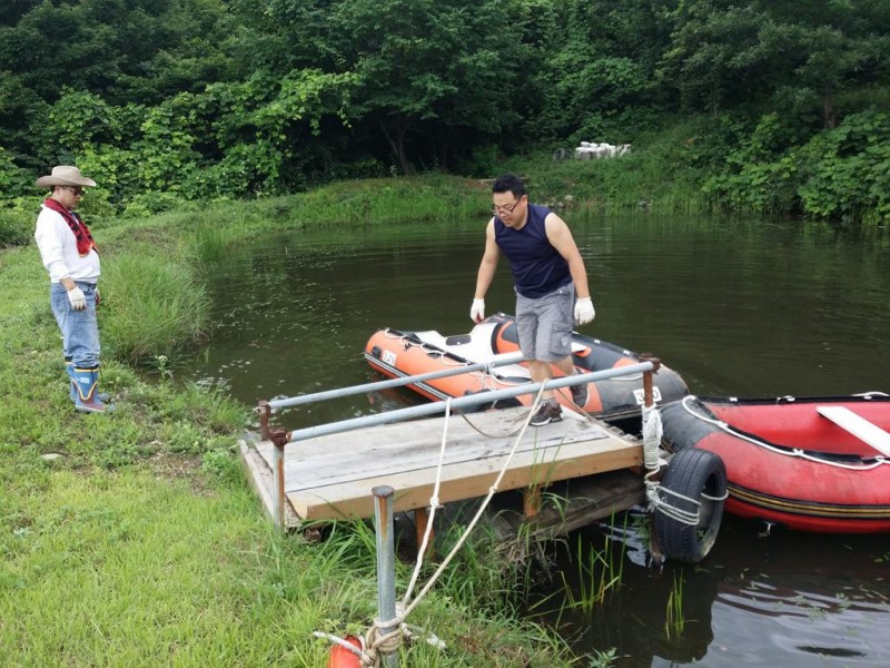 연못 주변 잔디까기, 연못 안전장치하기, 보트 띄우기, 청소하기, 모래나르기