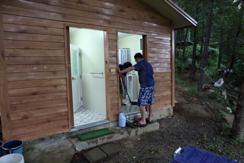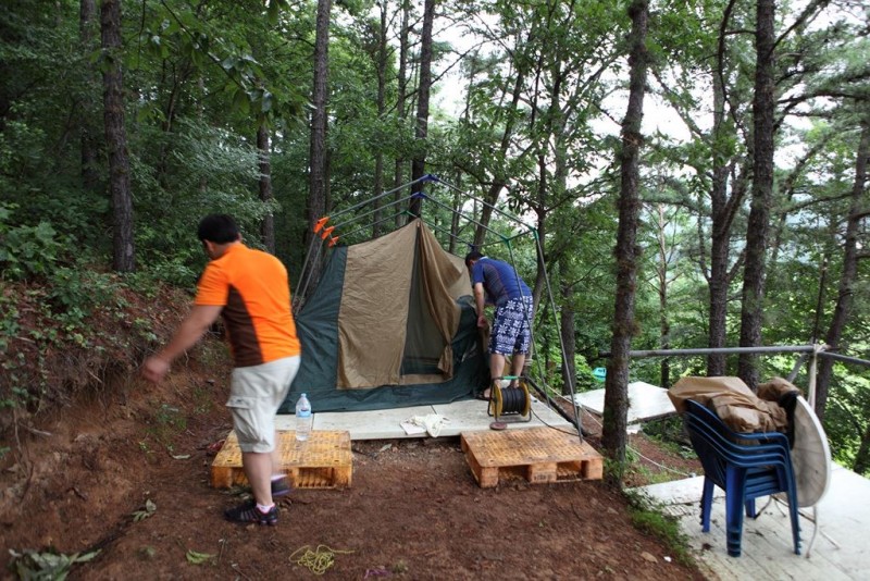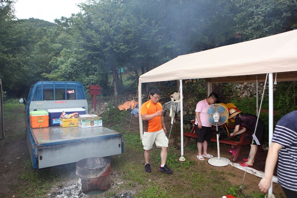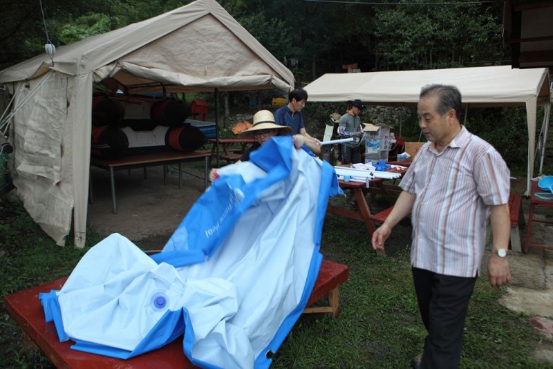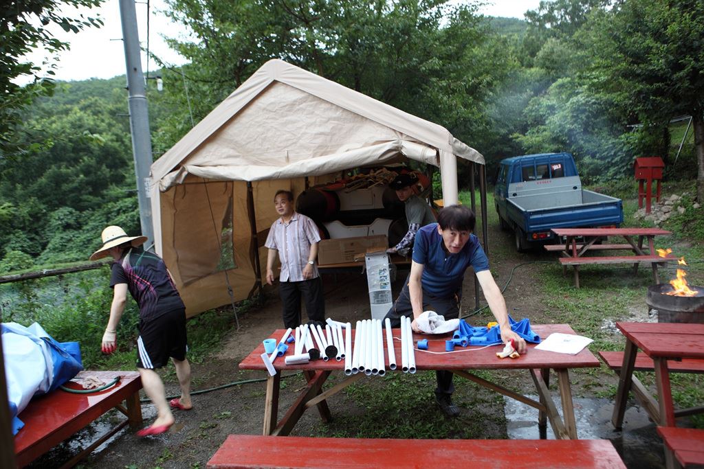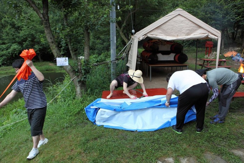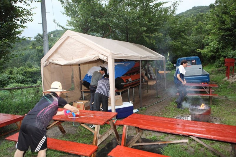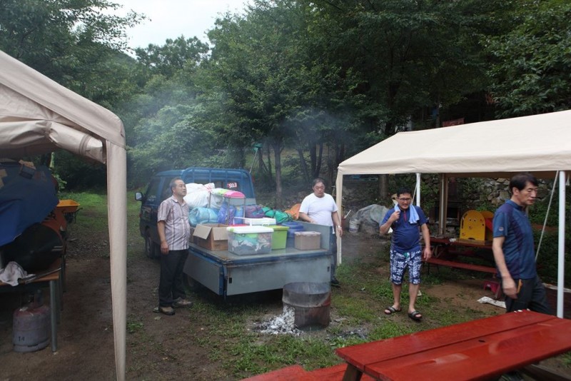 캠프를 마무리 하며 조금씩 내리는 비를 맞으며