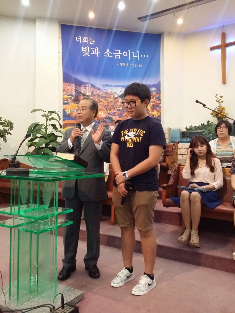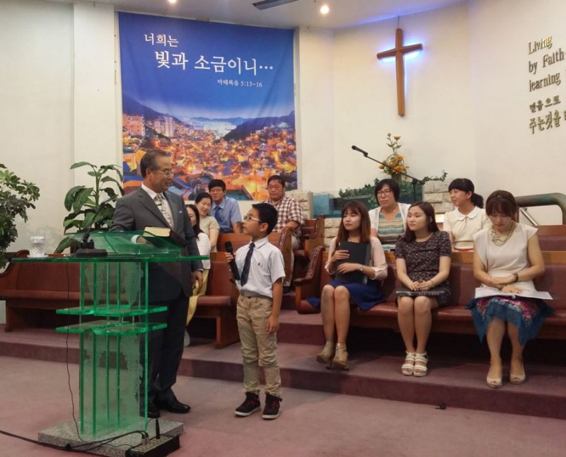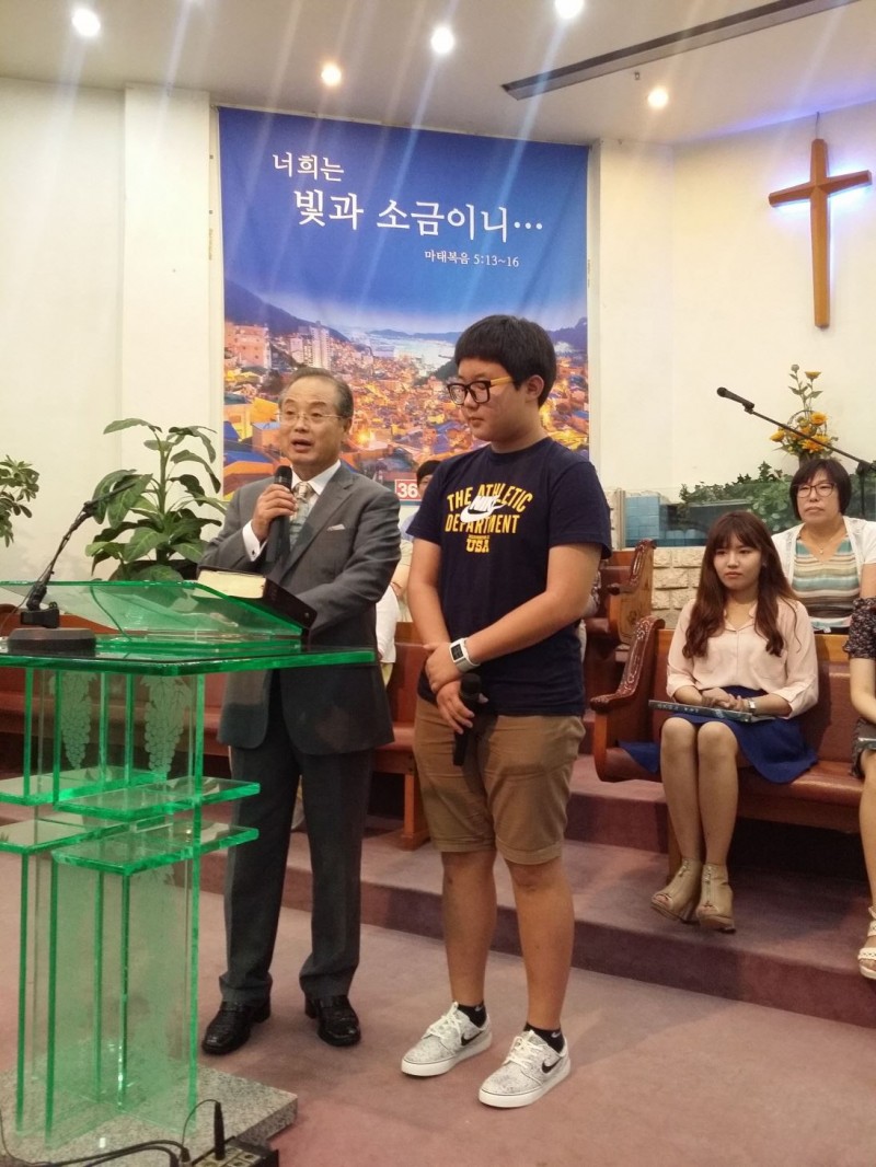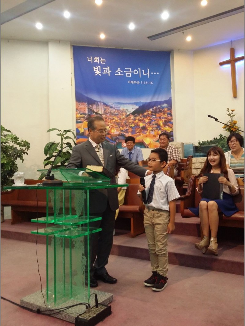 예배후 침례식에 첫번째로 받은 초2 명지훈 형제