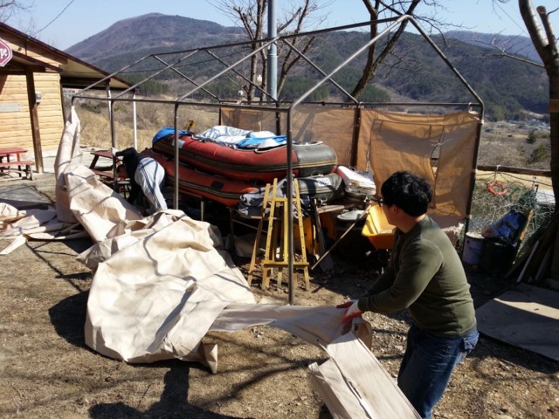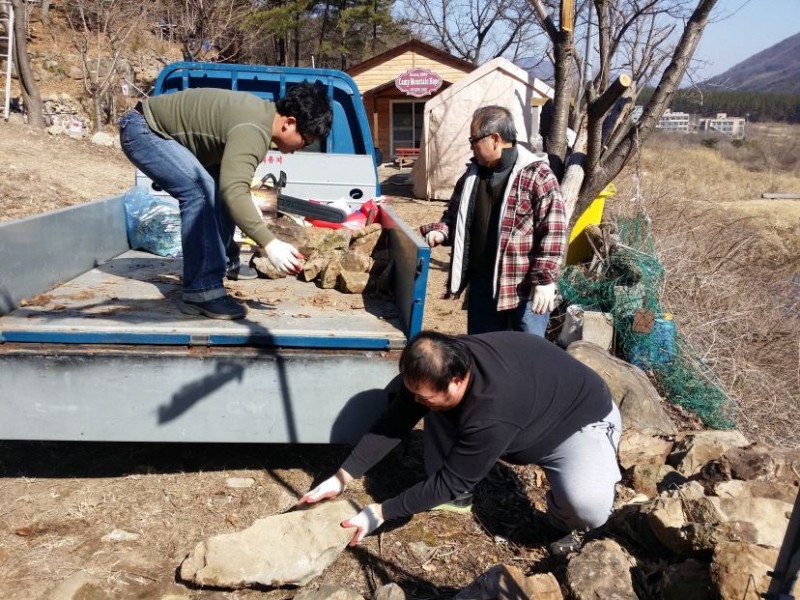 목사님과 전도사님, 강문수, 석정민형제님과 함께 캠프장 시설보수를 하였습니다^^