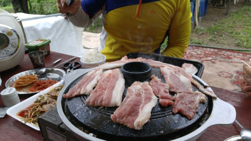 언양에서 불판을 구입하여 점심에 맛있는 삼겹살 파티를 하였습니다.