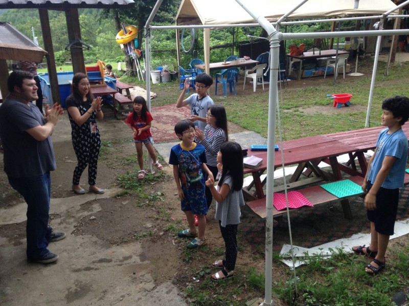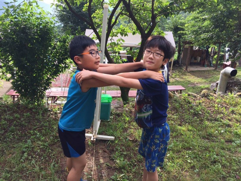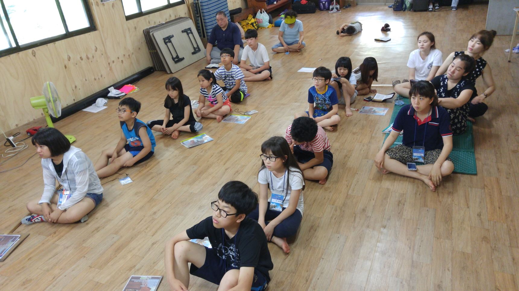 둘째 날! 아침기상체조를 시작으로 2그룹으로 나누어 영어공부와 말씀을 듣는 시간을 갖었습니다.