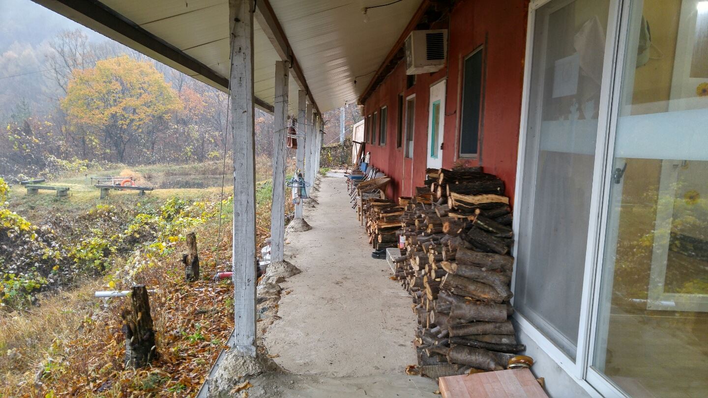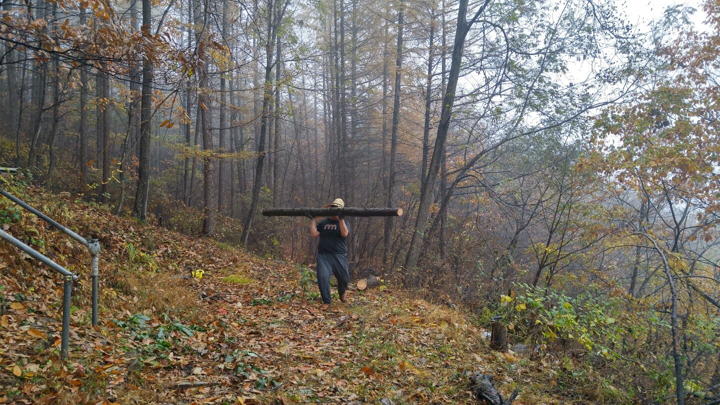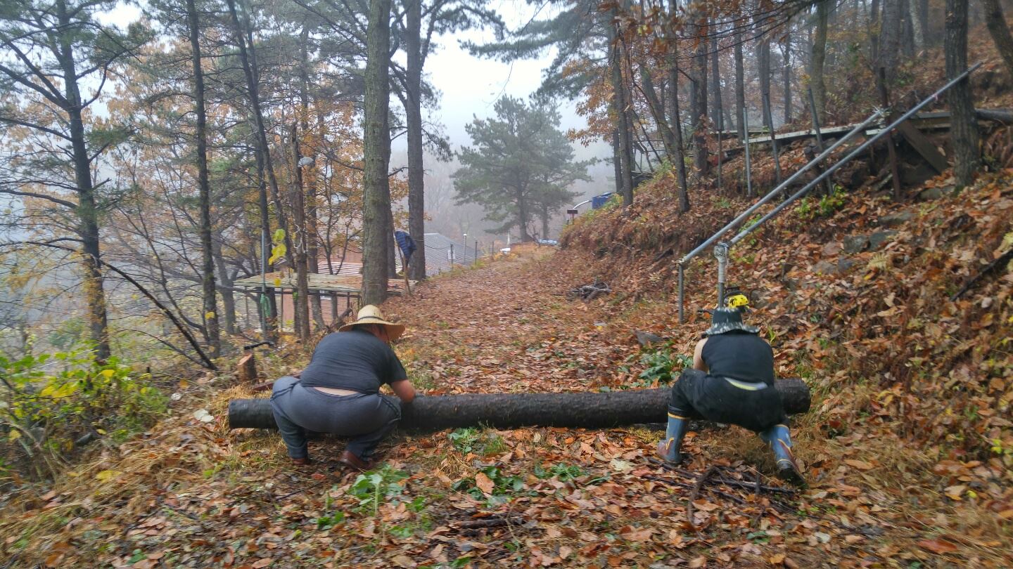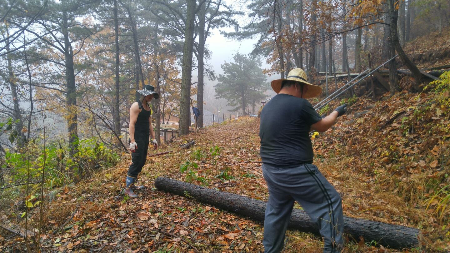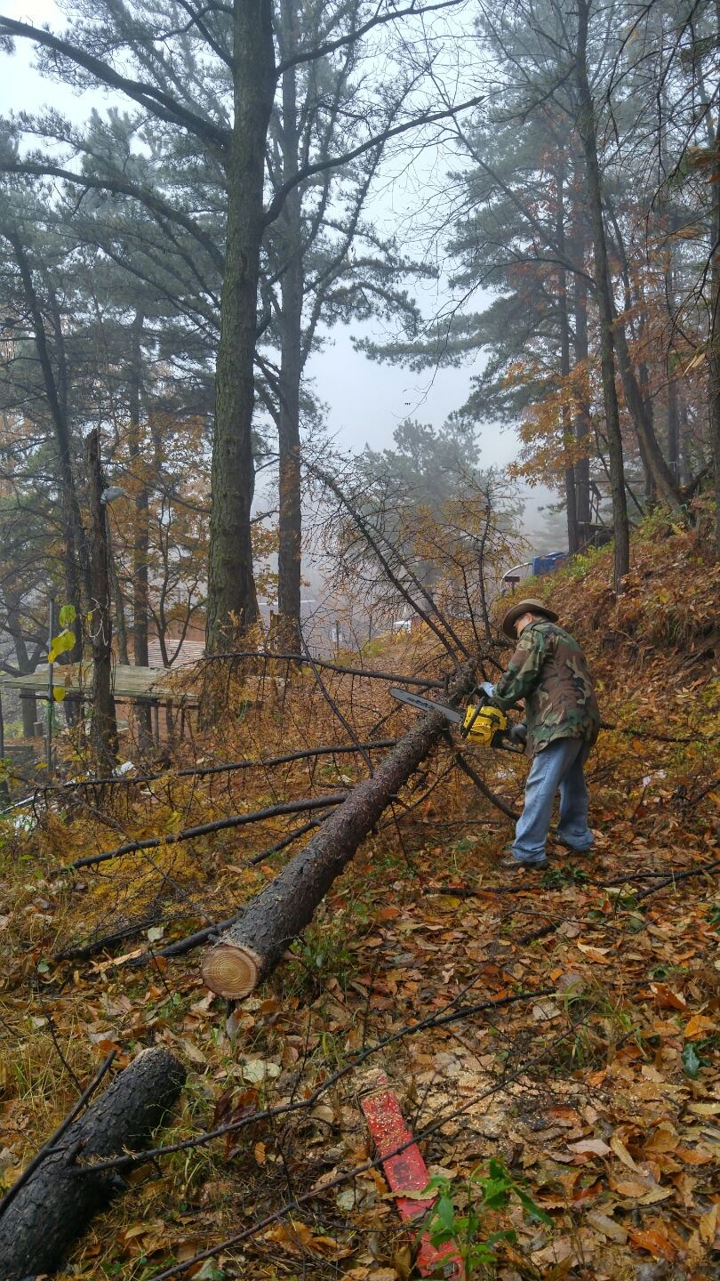 캠프장 [데크]확장공사 및 땔감 필요한 나무들을 잘라 놓았습니다.