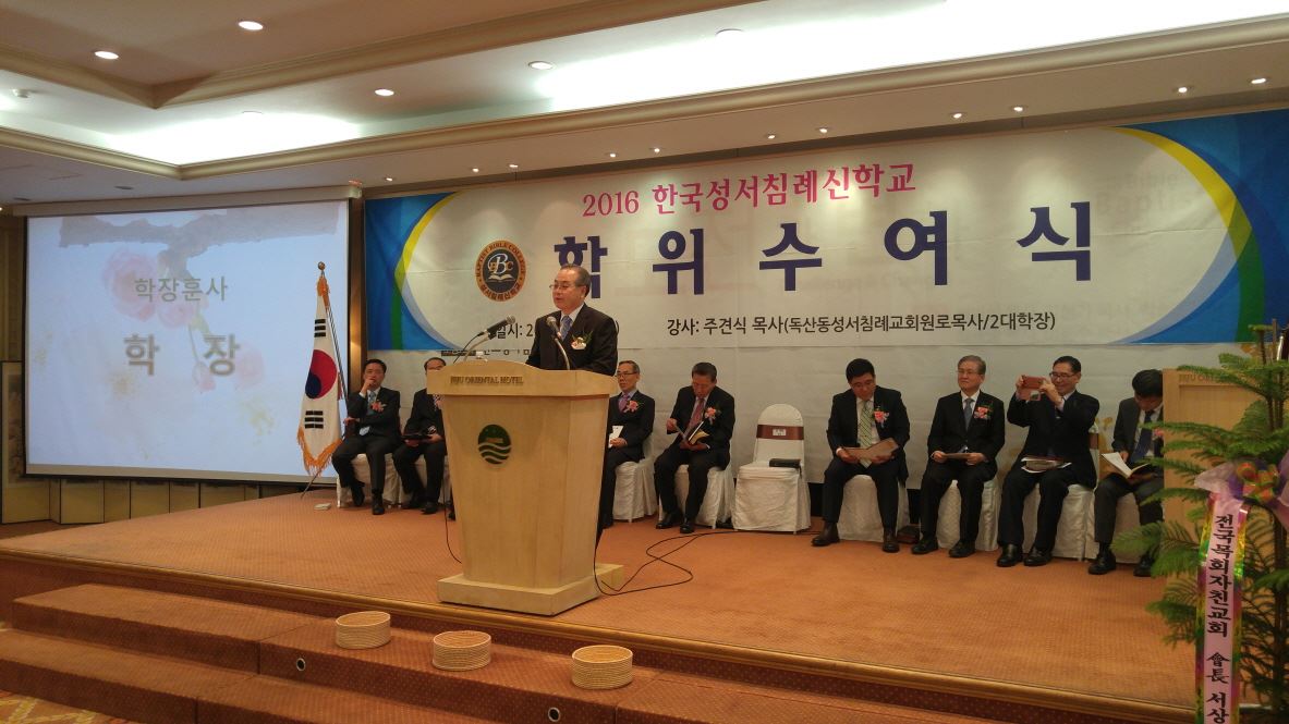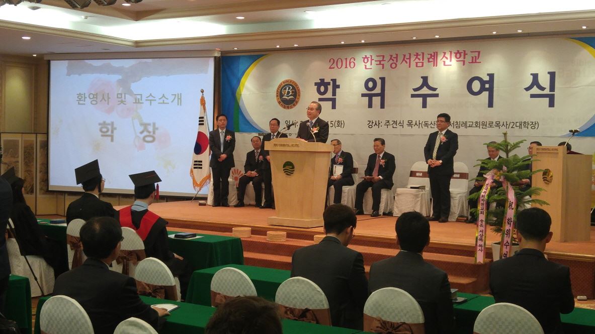 목사님께서는 학위 수여식 및 각교회 사모님들을 모시고 말씀을 전하시며, 이사장 이취임식과