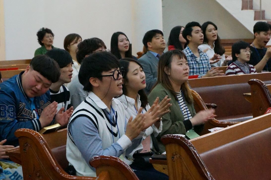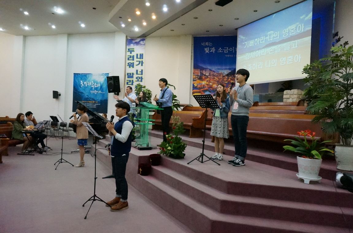 함께 참여한 믿음의 한 형제, 자매님이 함께 찬양을 드리고 있습니다.