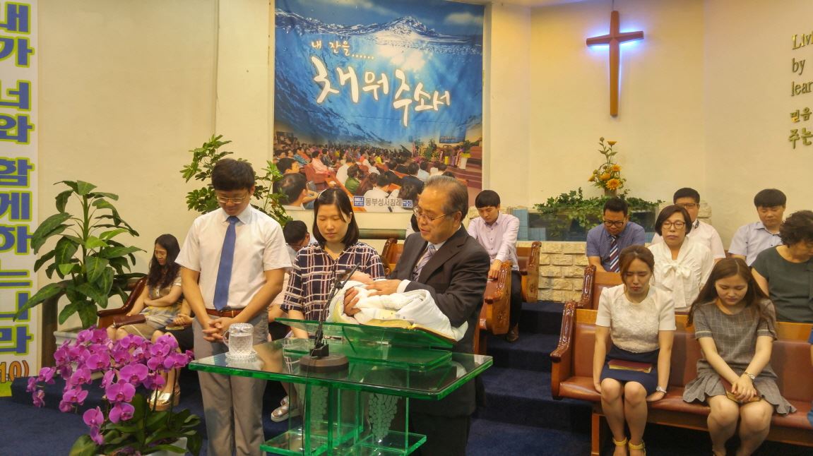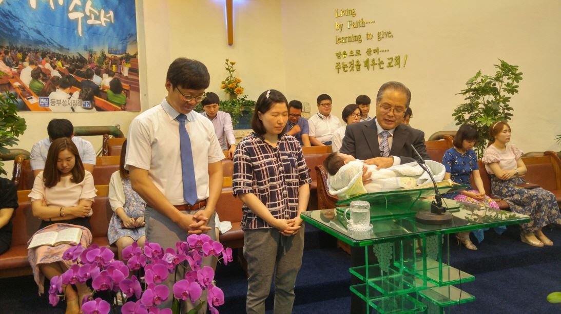 목사님과 온 성도님이 처음 하나님 앞에 나온 은서를 위해 기도하였습니다.