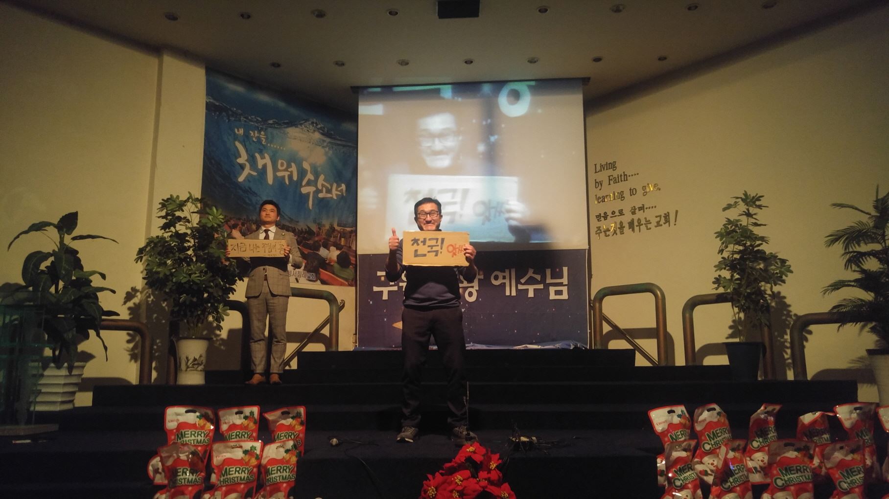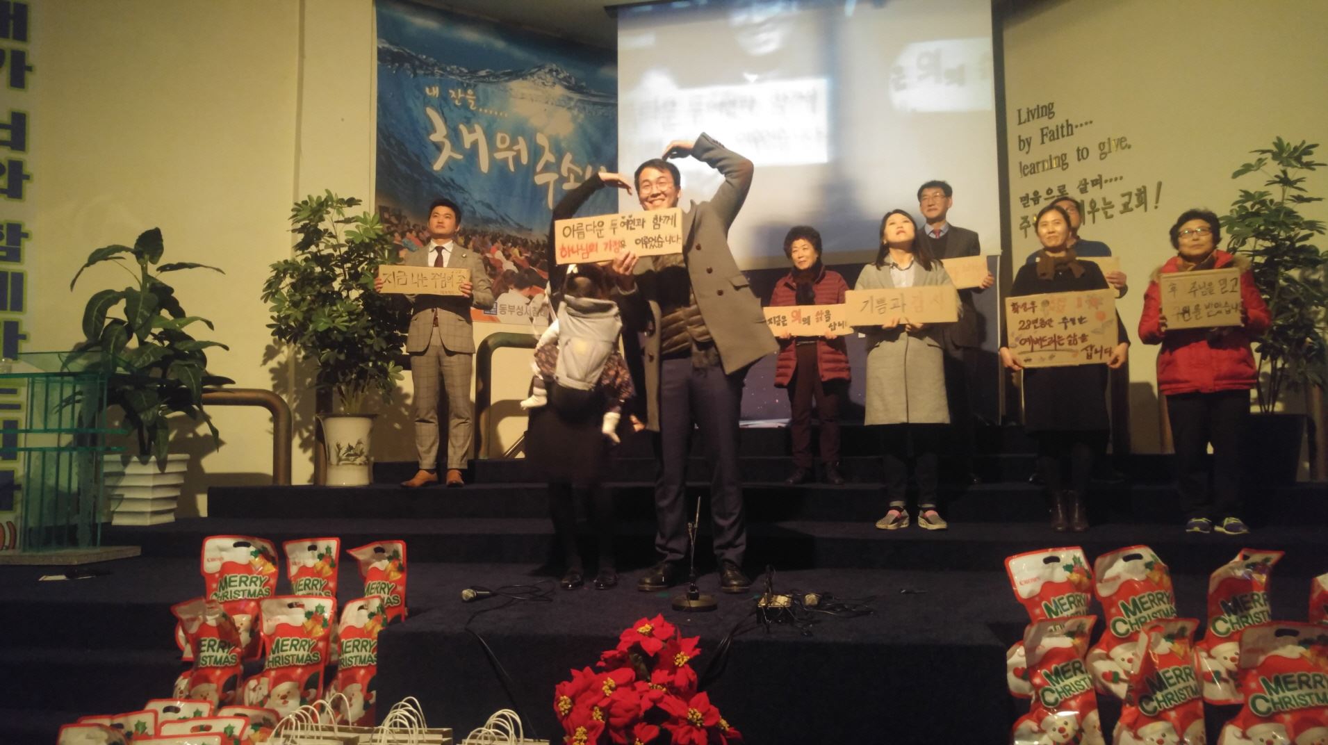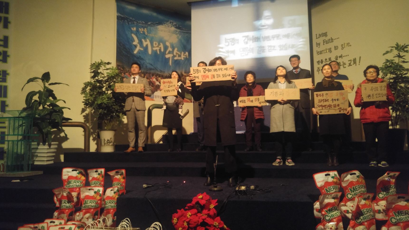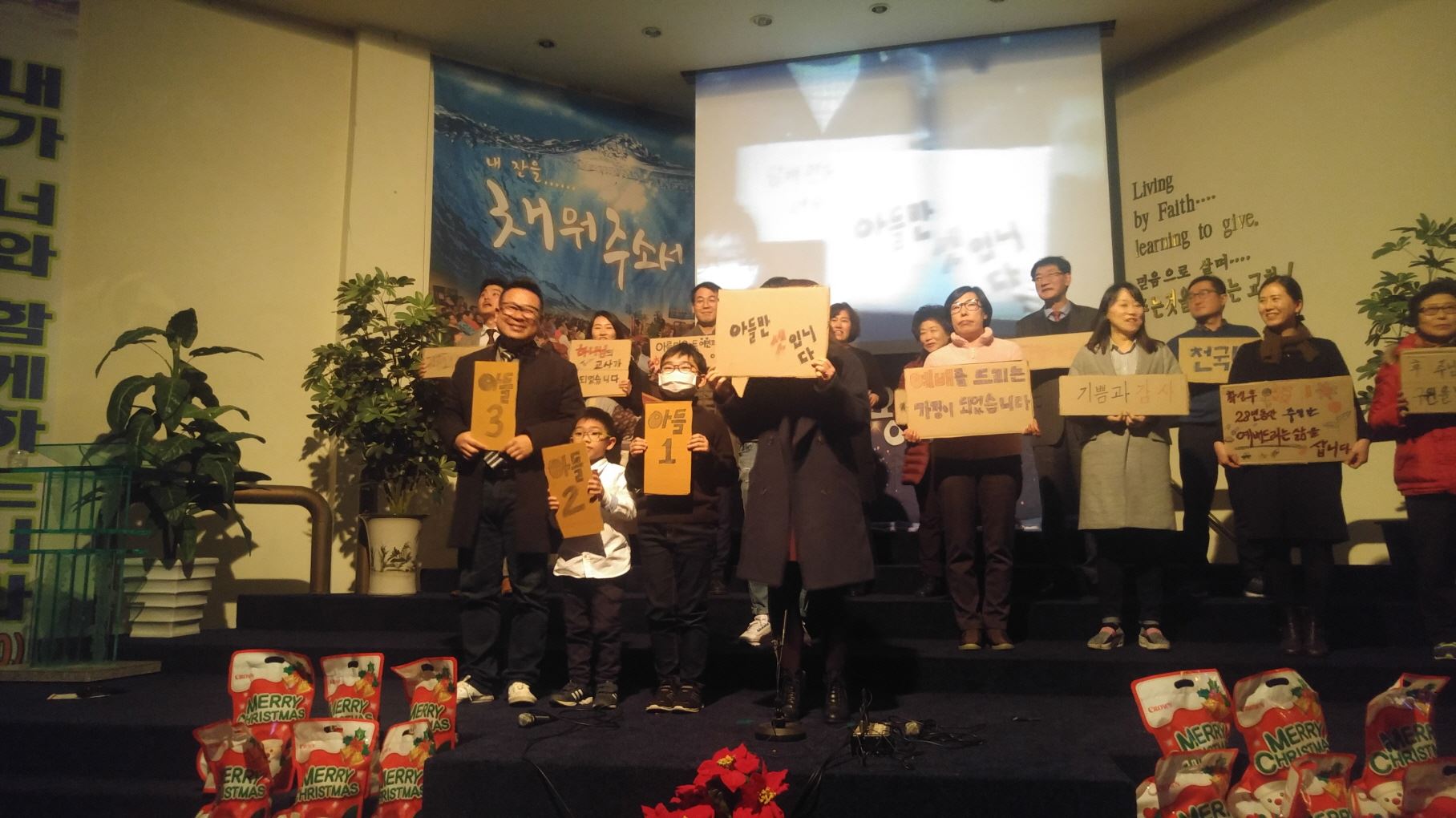 믿음의 선배되신 장년부는 구원받기 전과 후를 골판지에 적어 간증과 감사찬양으로 고백하며