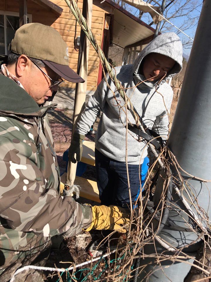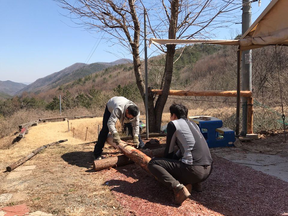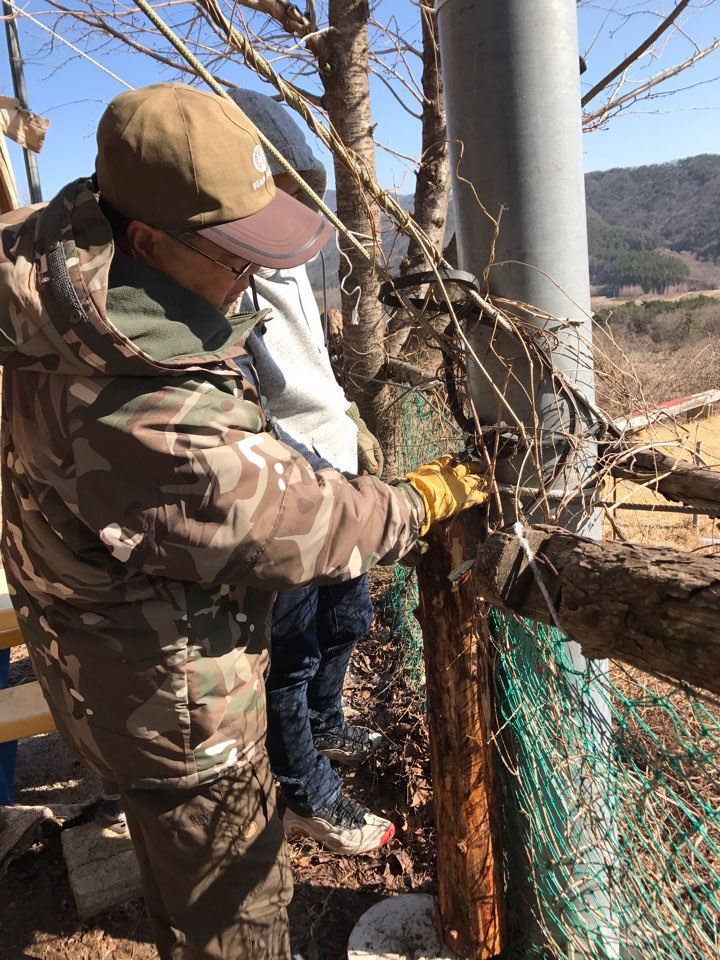 앞 마당 울타리 공사를 하였는데 처음으로 캠프장에 오신 형제님의