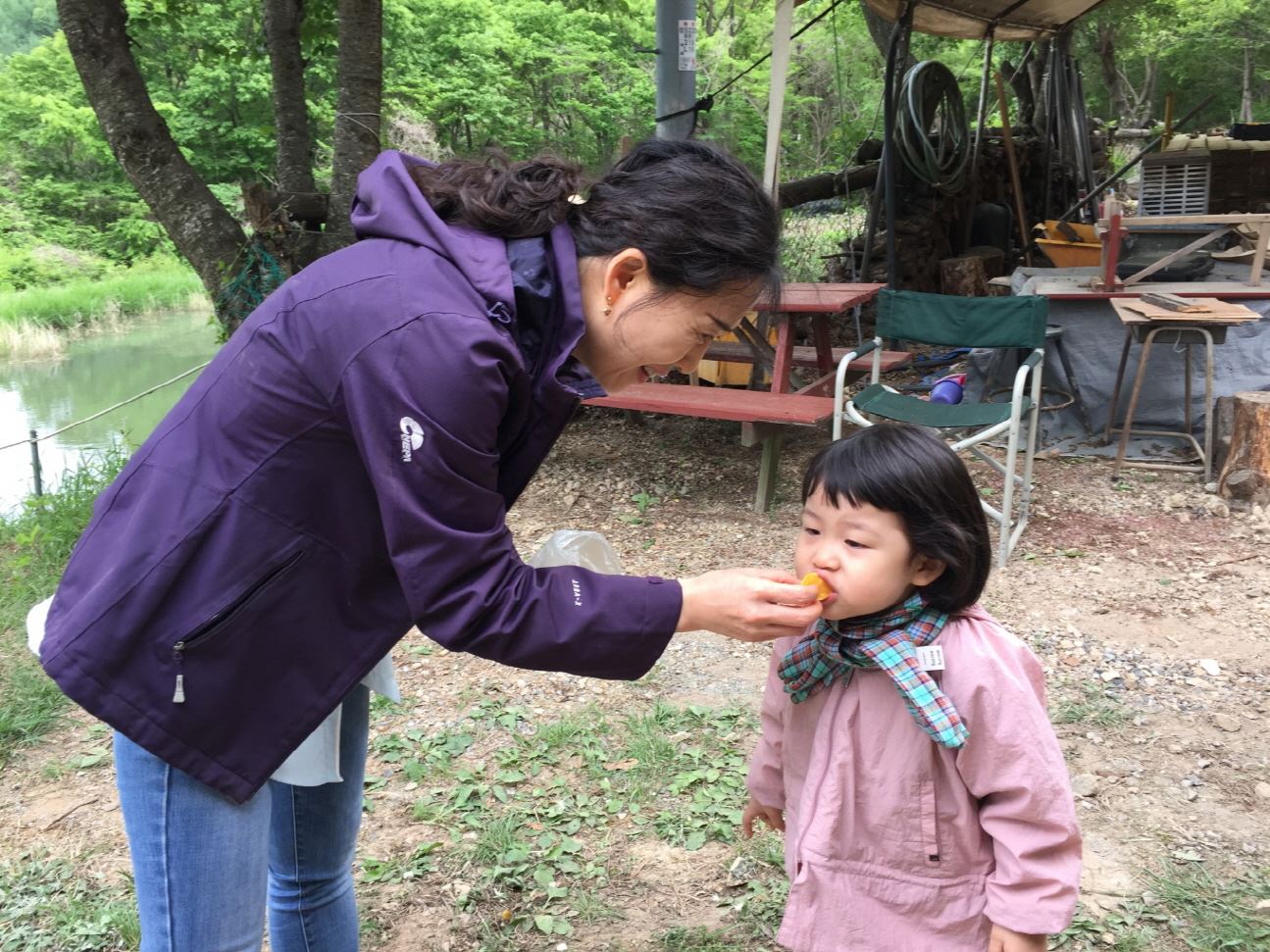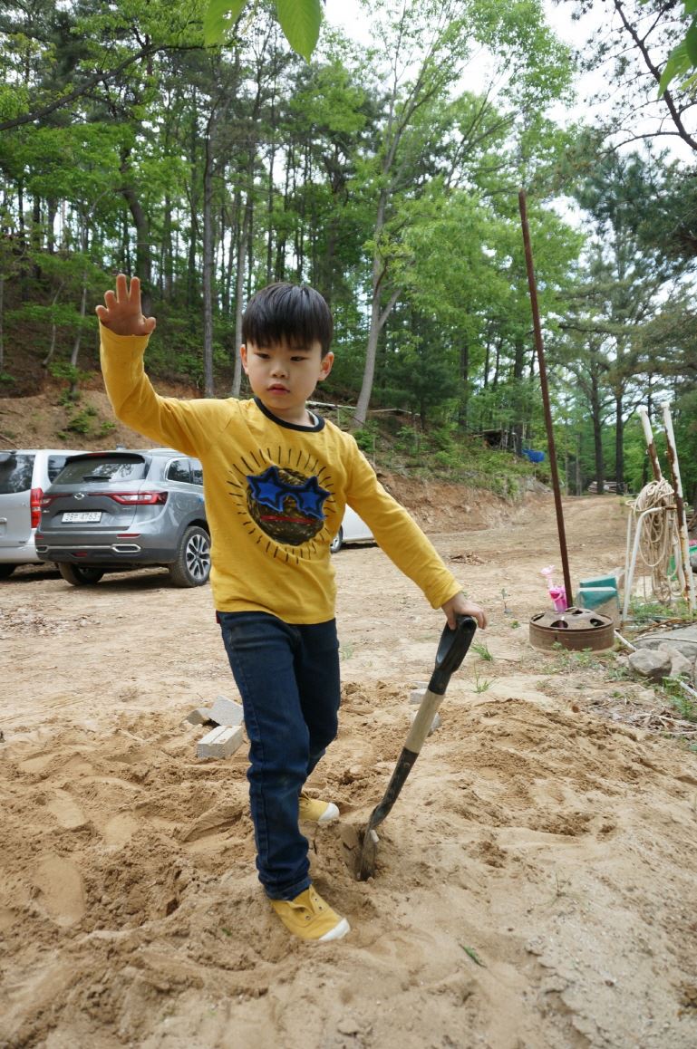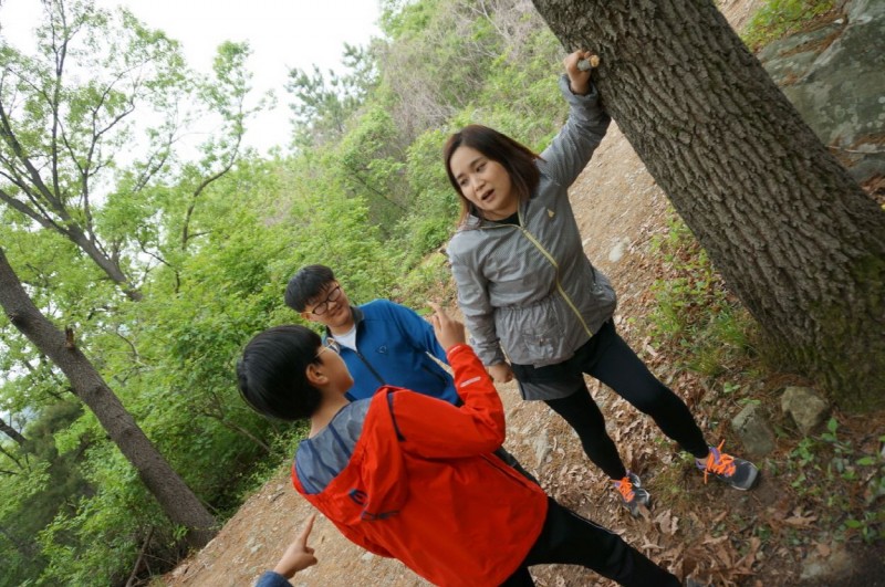 모매님들은 나물을 뜯으시고 형제님들은 텐트자리와 데크를 위한